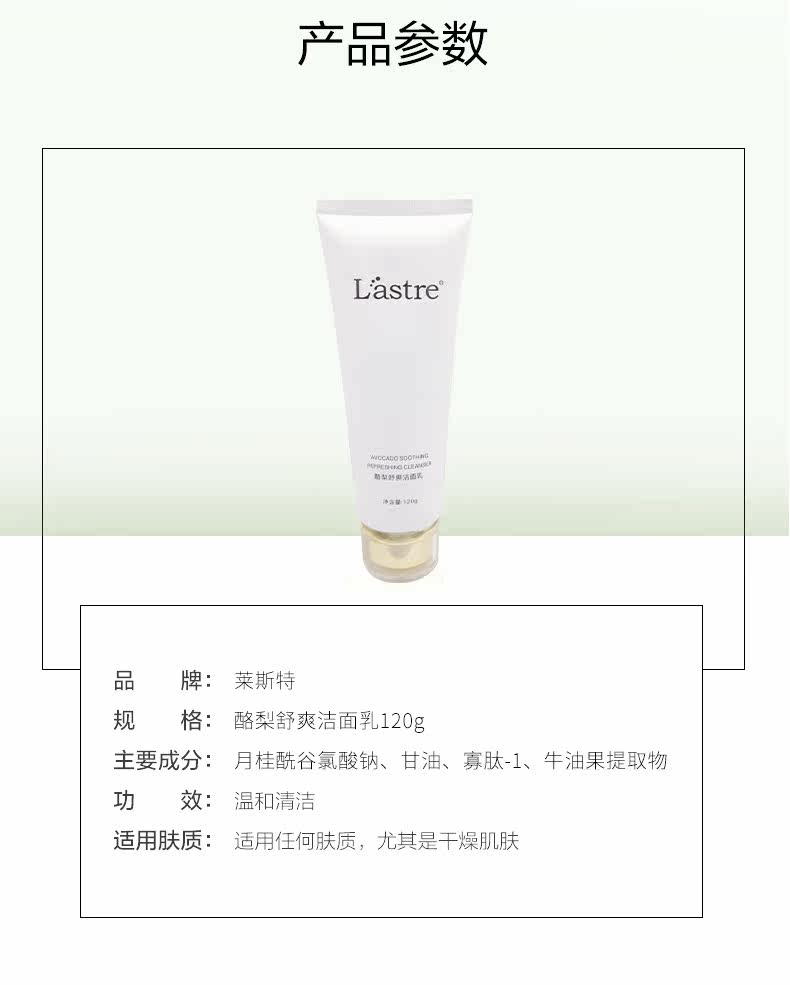 酪梨舒爽洁面奶,温和清洁,非常细腻,净透不紧绷,净螨清痘,保湿莹润,能缓解皮肤干燥脆弱的现象。“谁说洗面奶都一样”这一支就很特别。
