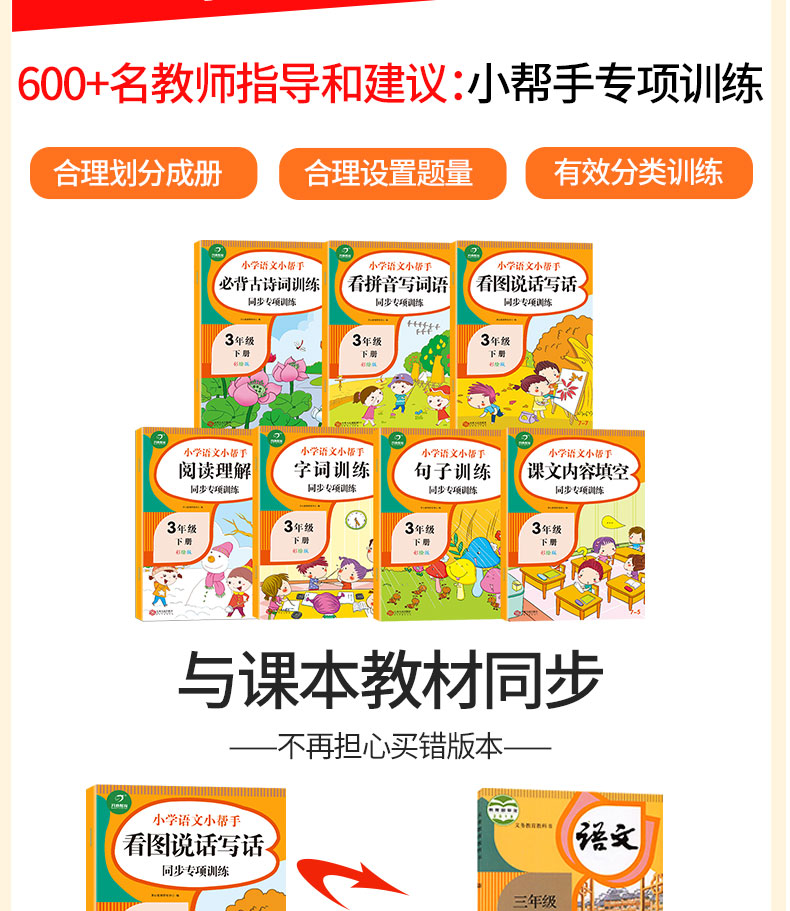 【7本装】三年级下册语文。2020新版三年级下册【看拼音写词语+看图说话写话+字词句篇+阅读理解训练+课文内容填空专项训练全套7本】语文同步训练语文练习册。一本才一块钱多一点,紧给家里的小孩子囤上!