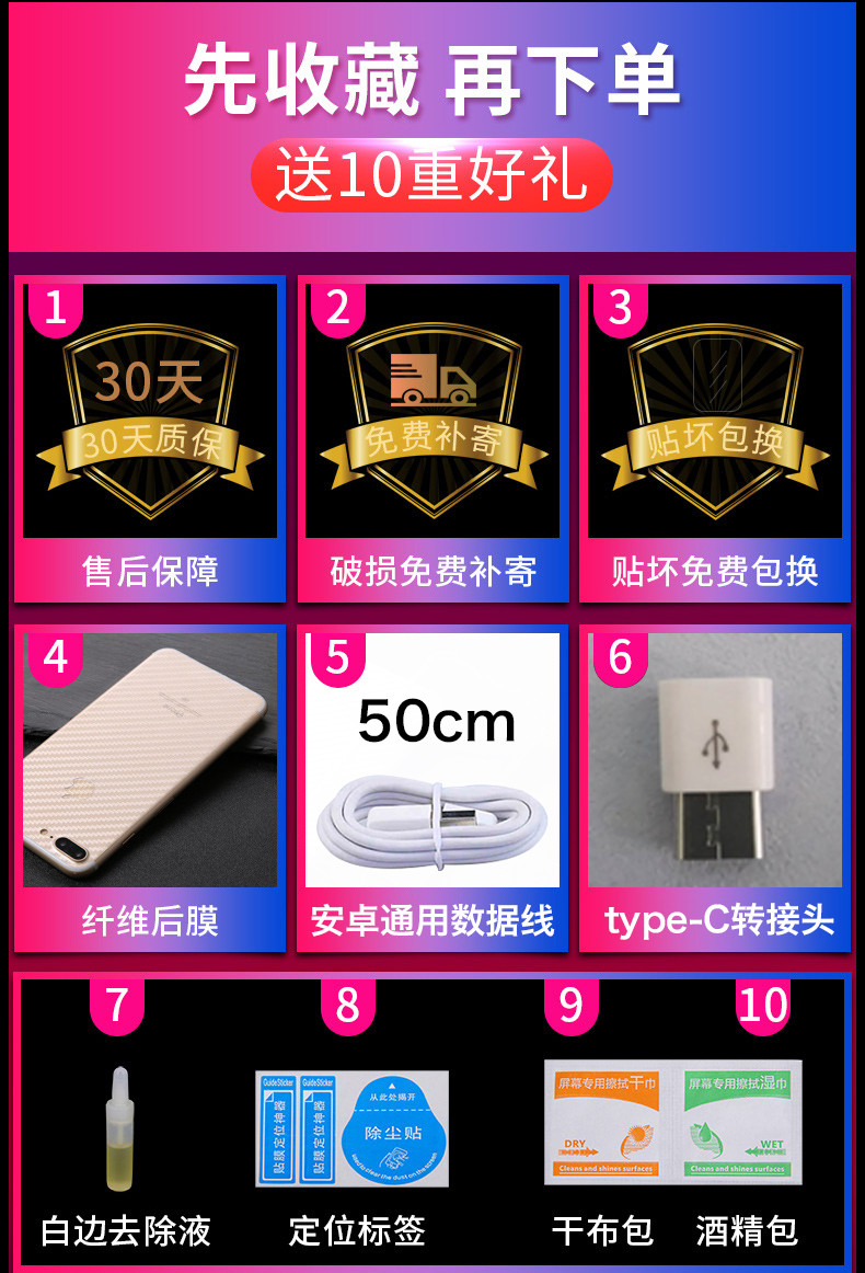 【超值两片装】拍下备注型号,苹果!华为!小米!魅族!oppo!vivo!全系列高铝硅强化防爆钢化膜。2.5D圆润弧边,透至裸机屏幕的守卫者,强抗指纹,高品质高颜值,足以匹配您高贵的爱机!