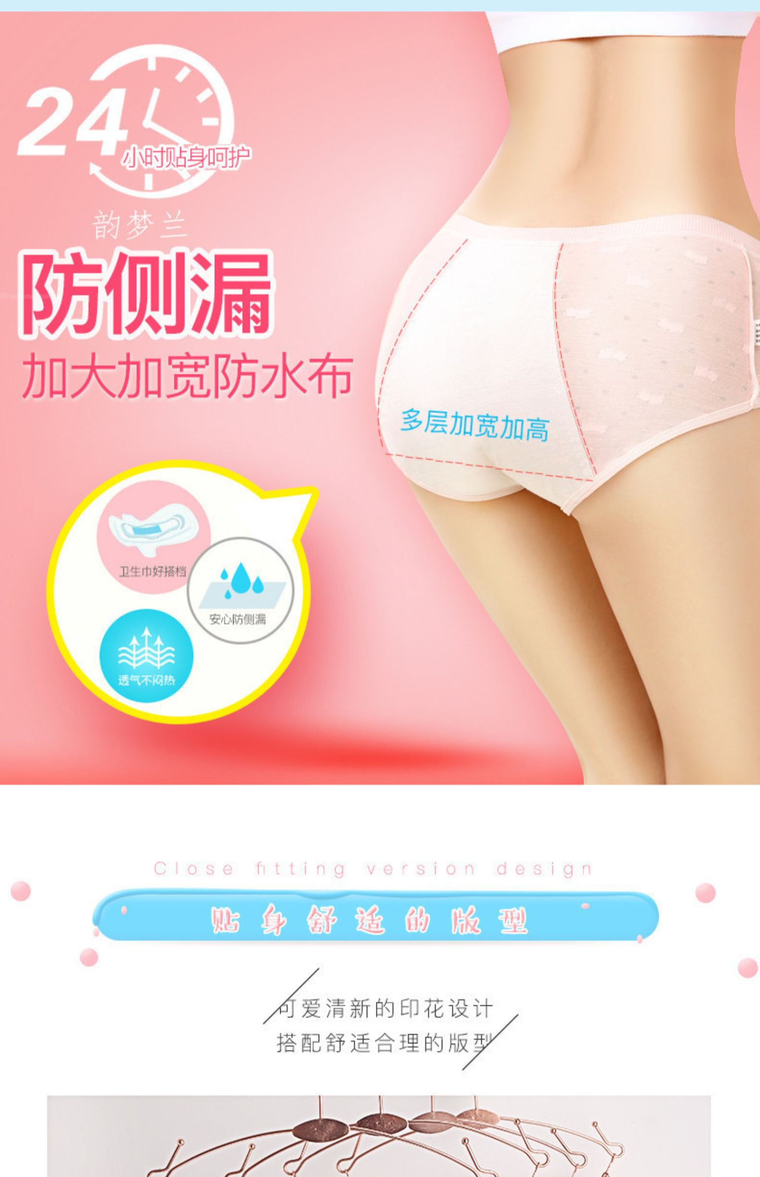 24小时安心呵护,经期防漏生理内裤,柔软舒适,透气易清洗,三层防漏面料,腰部不紧绷,无勒痕,经期专属设计,安全一整夜,让您经期不再烦恼!还等什么,再犹豫就都是别人的了!!!