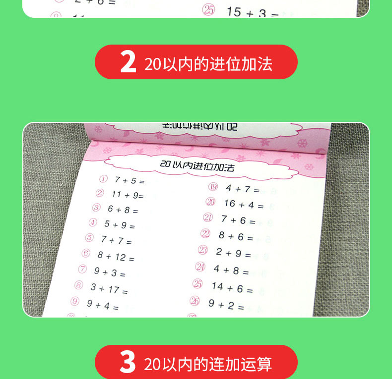 【3本装】书店一本15.8元,现在10.5三本带回家。大开本护眼纸精装印刷,题型全面,不伤眼,4本在手,快乐学数学,轻松上小学,强化运算能力,提高运算速度~~