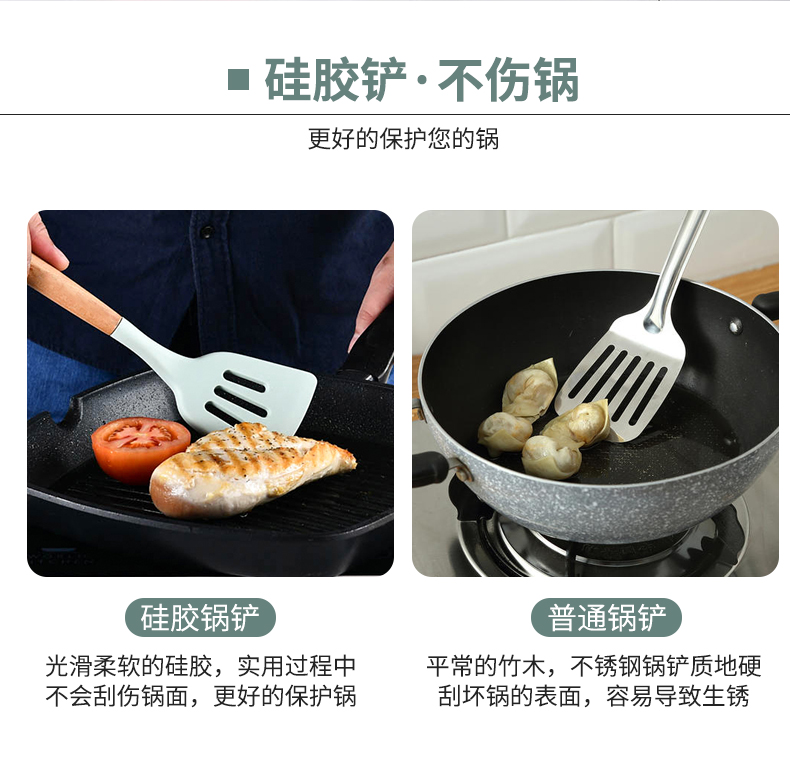 防烫手柄,食品级,可用于不粘锅,易于清洗,耐高温,不伤锅,更耐用,厨房好帮手~耐高温又美观!!