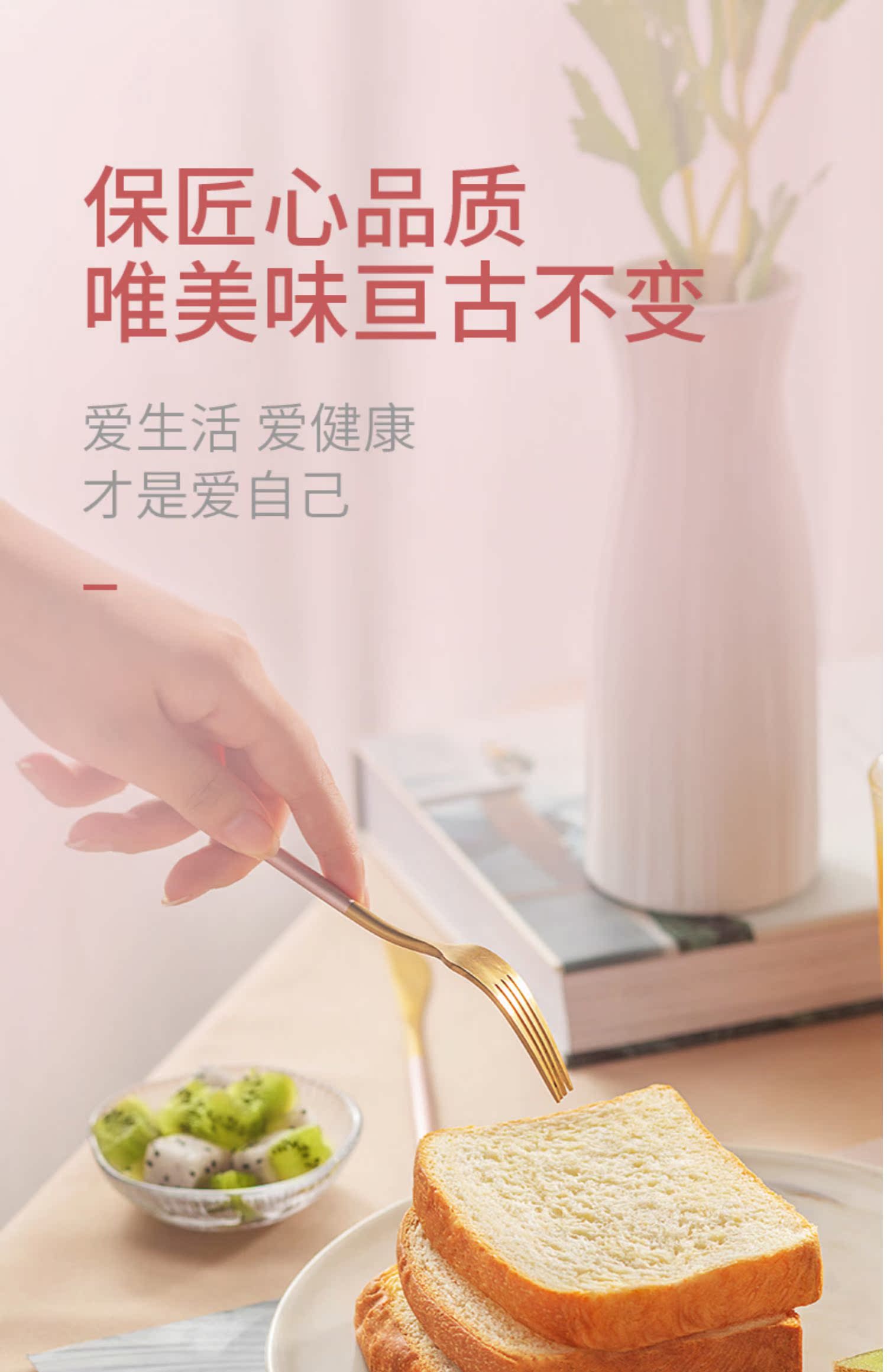新鲜吐司面包,香甜松软Q弹,无夹心不油腻,奶香四溢,配杯牛奶~饱腹又营养!还可以做成三明治吃呢!老人小孩都喜欢吃,独立包装,随时随地享受美味。