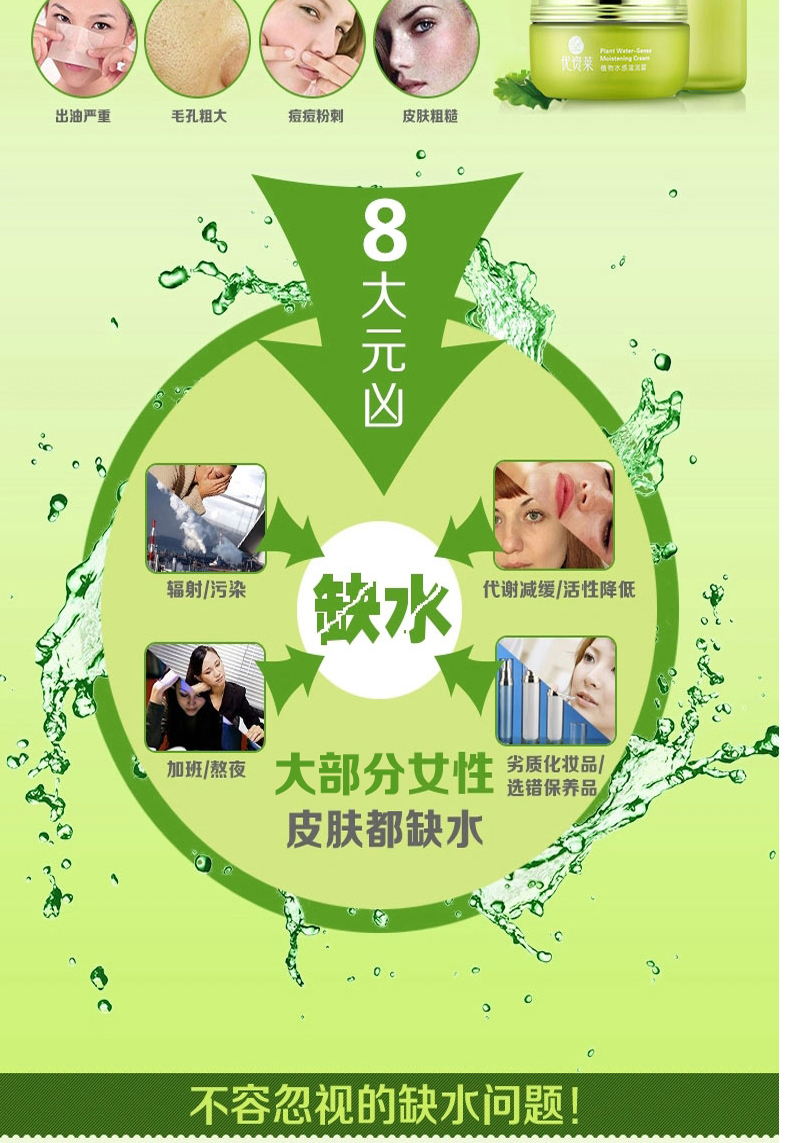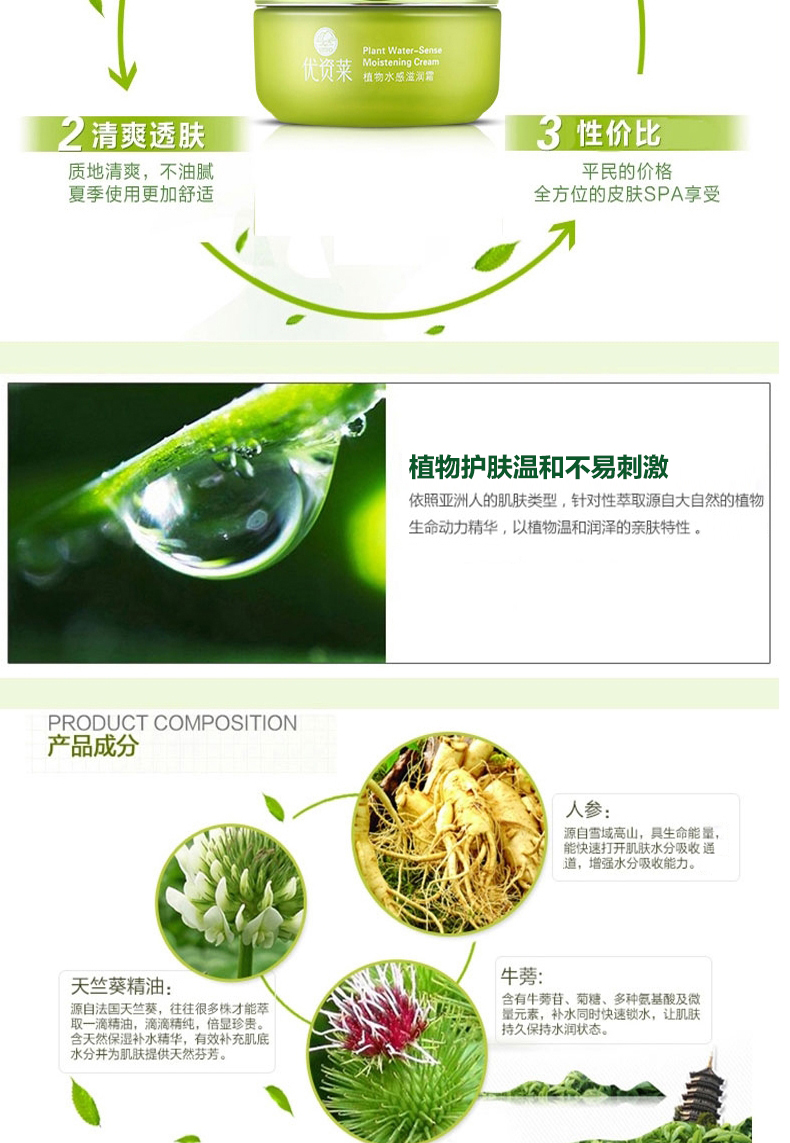 保湿补水,清新滋润,温和无刺激。植物水感弹力面霜,面霜届人气火爆,补水保湿,滋养改善细纹~熬夜也不怕!有效淡化细纹,淡化眼袋,去黑眼圈,一瓶全效