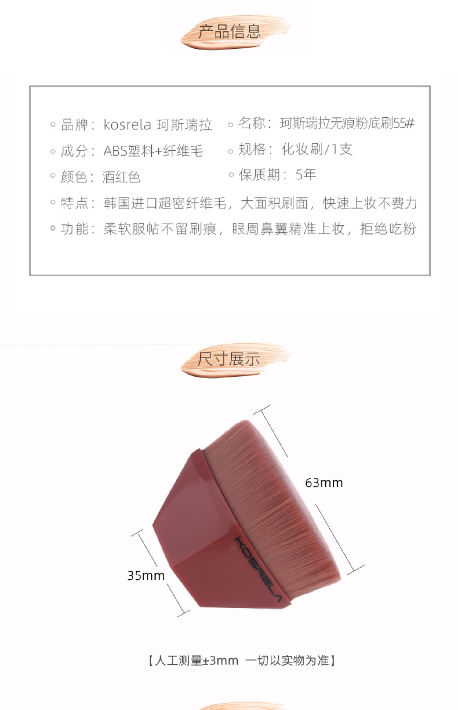 【抖音同款】韩国kosrela55号粉底液刷,63mm直径达面积,细密刷毛,快速上妆,打造无痕妆感,快速上妆省时省力,纤维刷毛,紧密柔软,不掉毛,不吃粉,无刷痕,易清洗~~