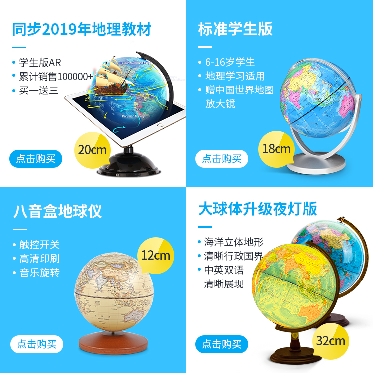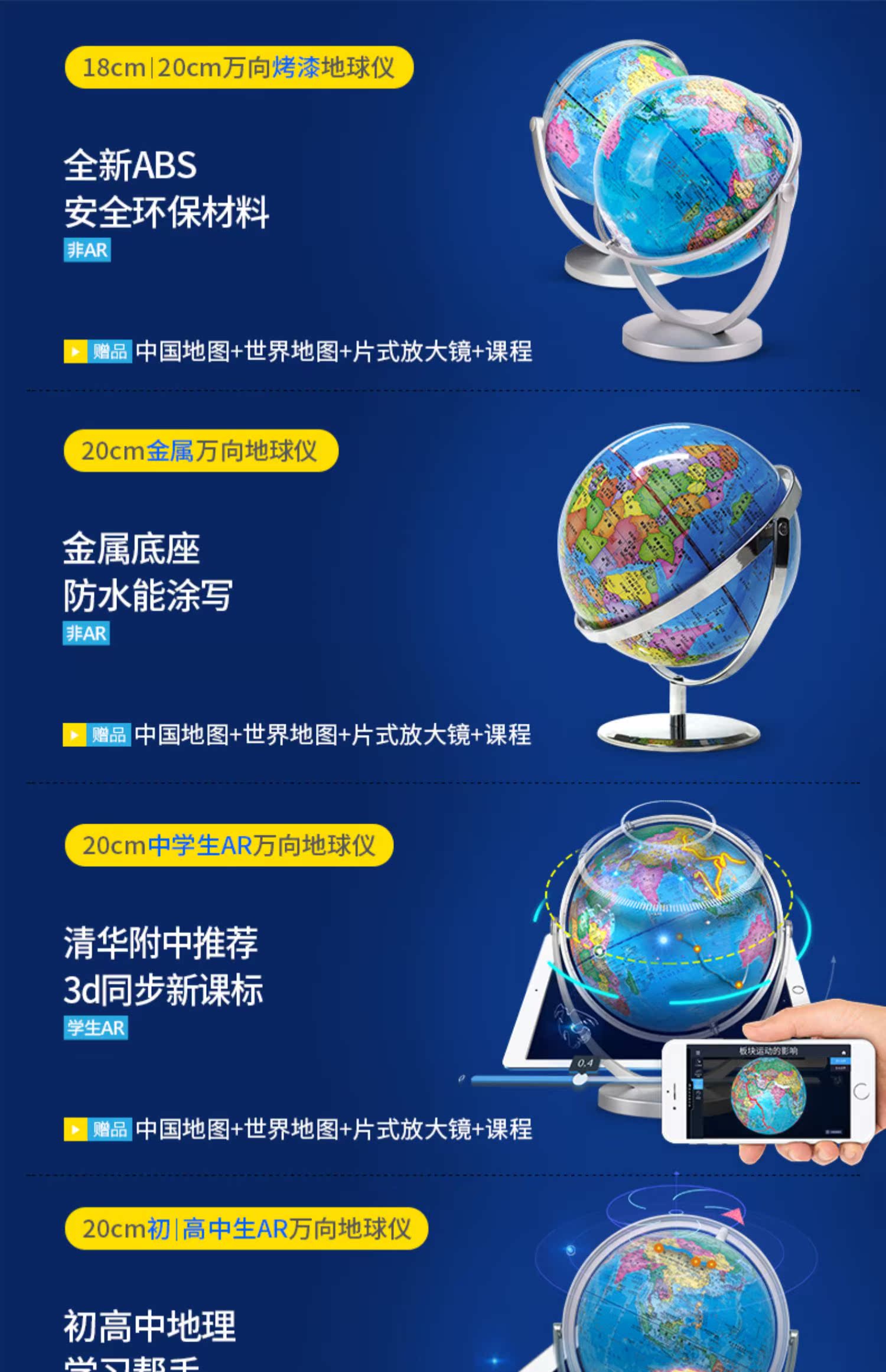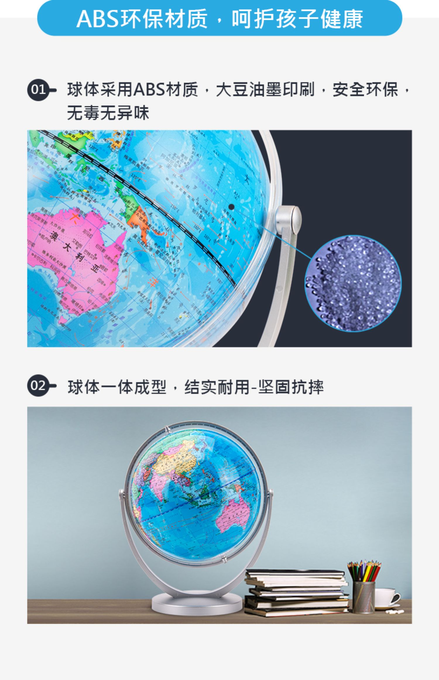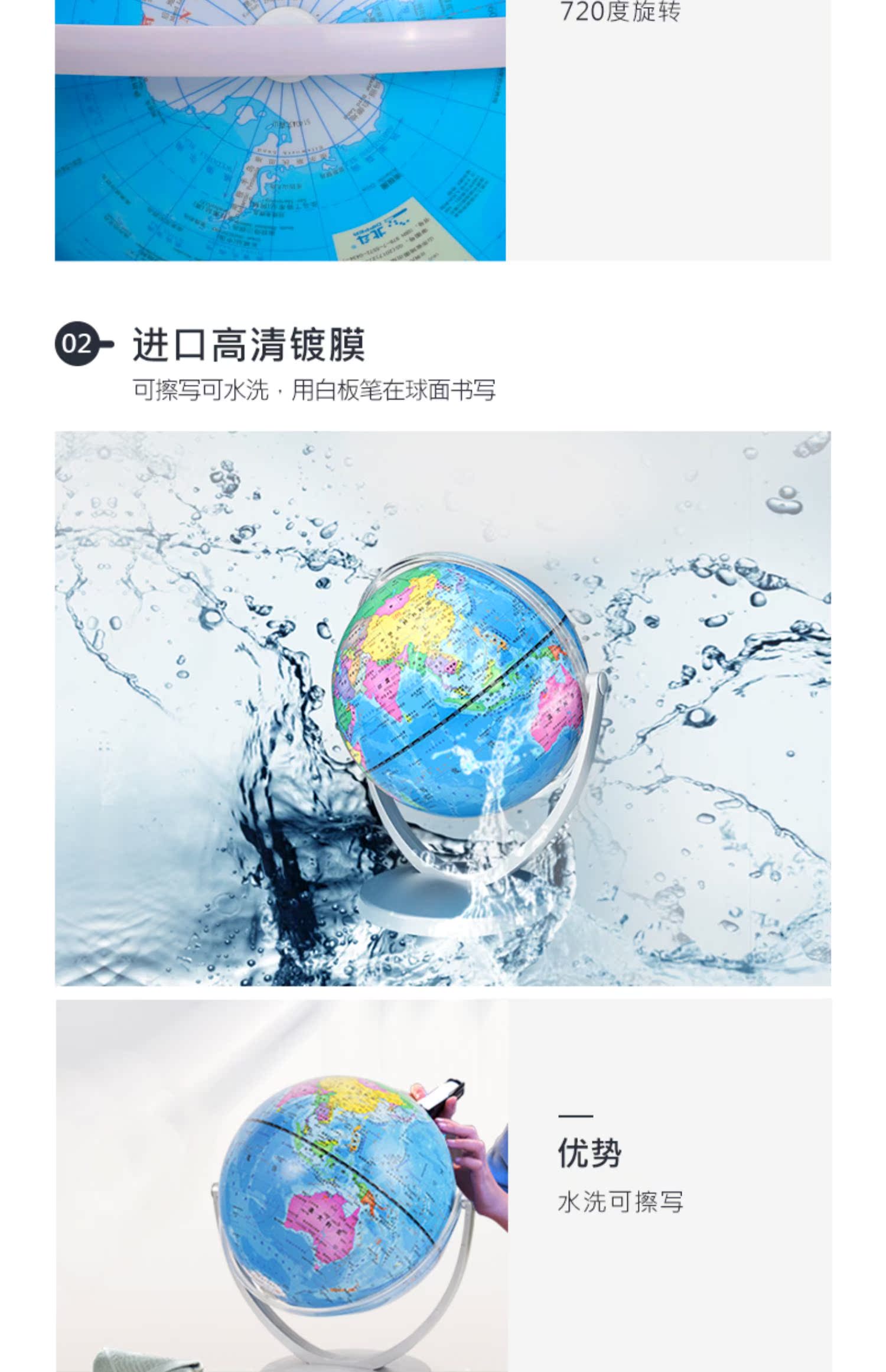 教材同步更新,高清印刷,清晰不掉色,再细微的岛屿也能找到!体积小巧,方便携带,360°旋转,认识世界的每个角落,学生地理课教学必备!