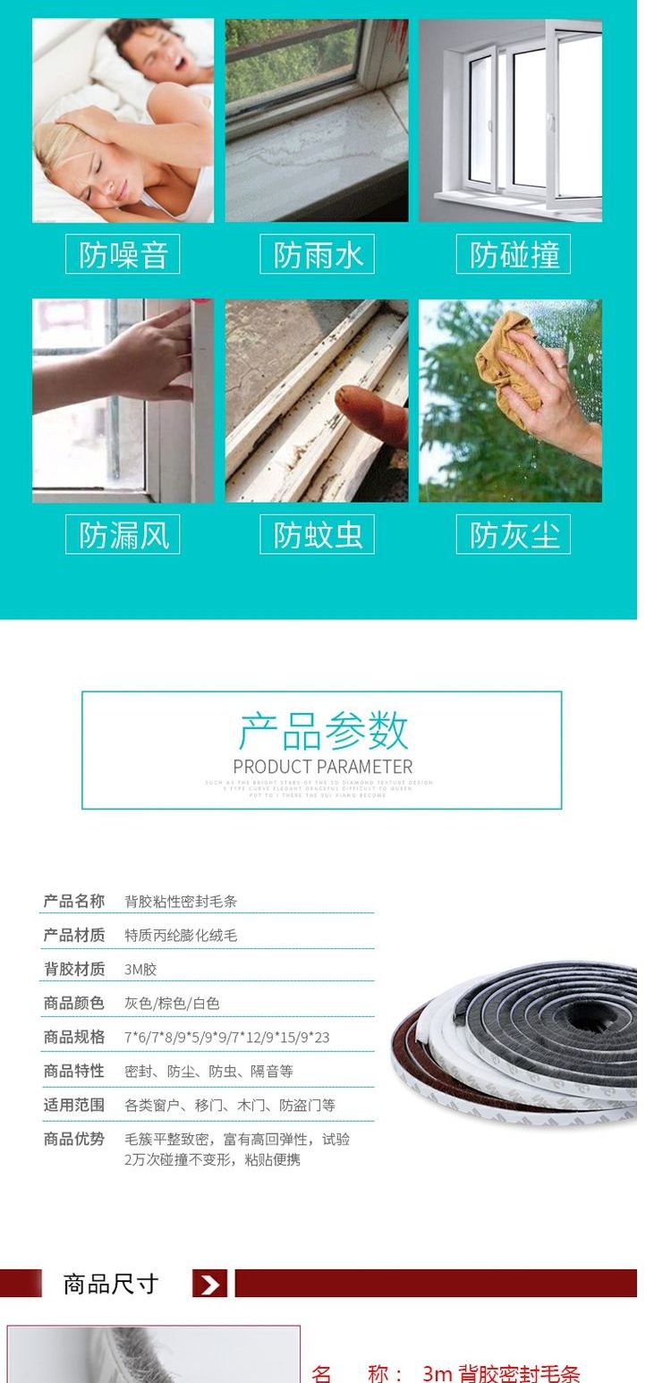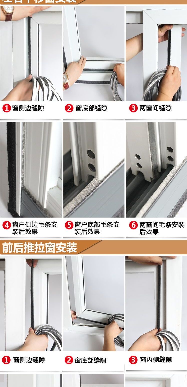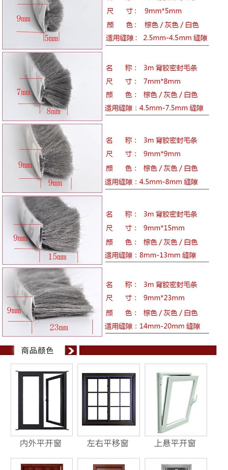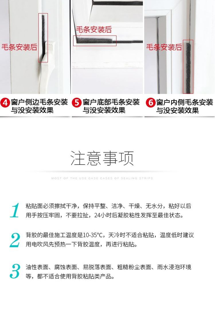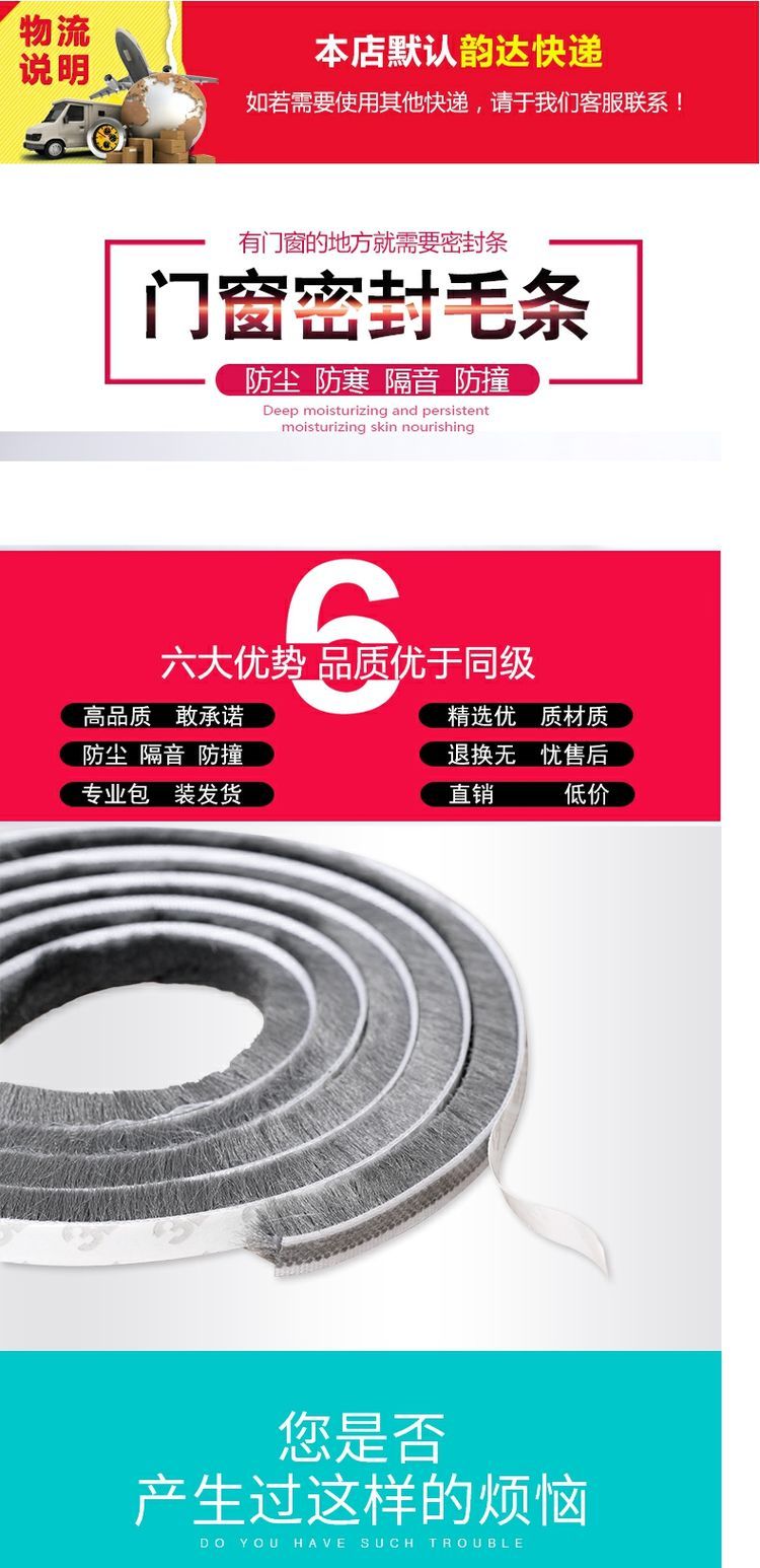 超值5米装哦,多尺寸毛可选,防风防尘防噪音,隔音保暖哦,再也不怕冷气灰尘噪音进入了,毛绒面密而且不掉毛,自粘性强不留痕迹,适合所有门窗密封,好门窗就用好密封条