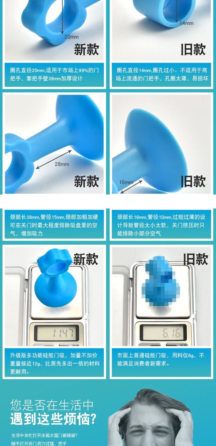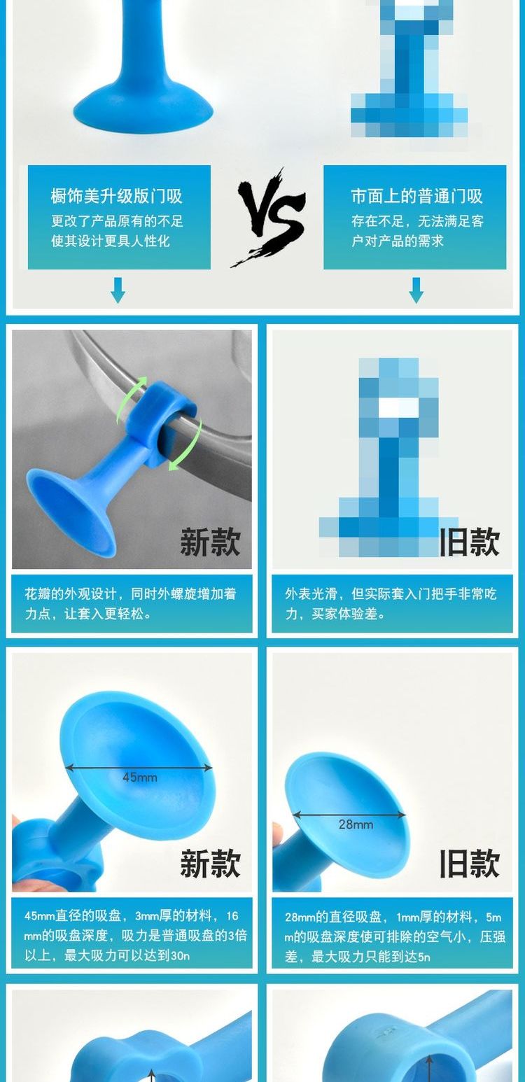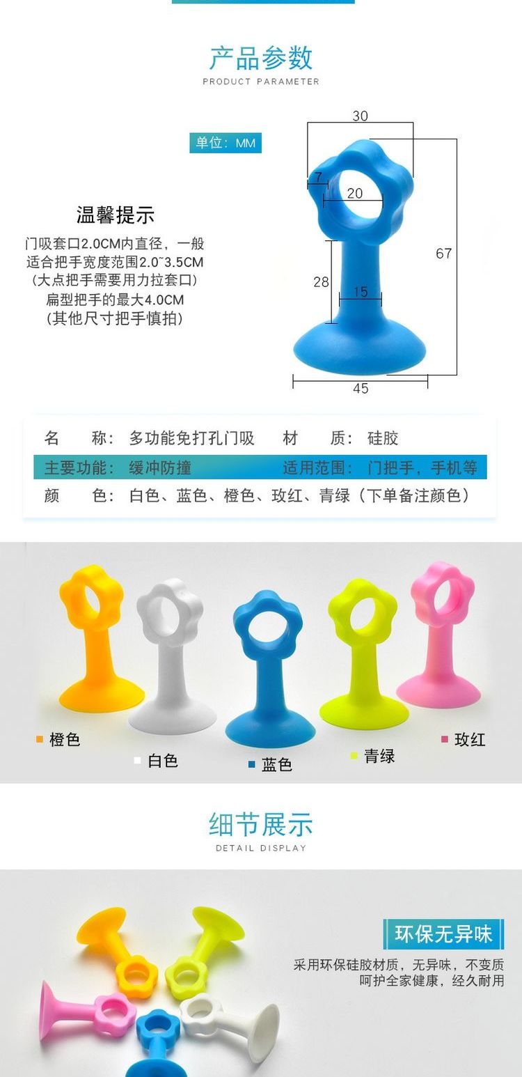 5个装安全环保硅胶,2019新款升级!柔韧十足,大吸盘,强吸力,适用于任何场所,轻松解决门把手防撞的问题,保护门和墙面,避免噪音,多用途,居家必备!