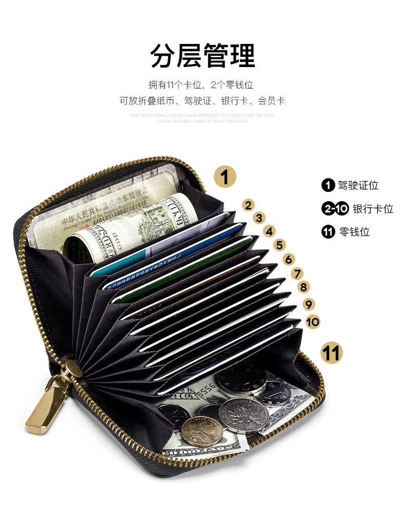【11卡位,2零钱位,可放驾驶证】双十一狂欢价,采用头层牛皮,风琴式卡位,分层管理,防磁耐用,质地细腻柔软,学生商务通用,尽显男士魅力。