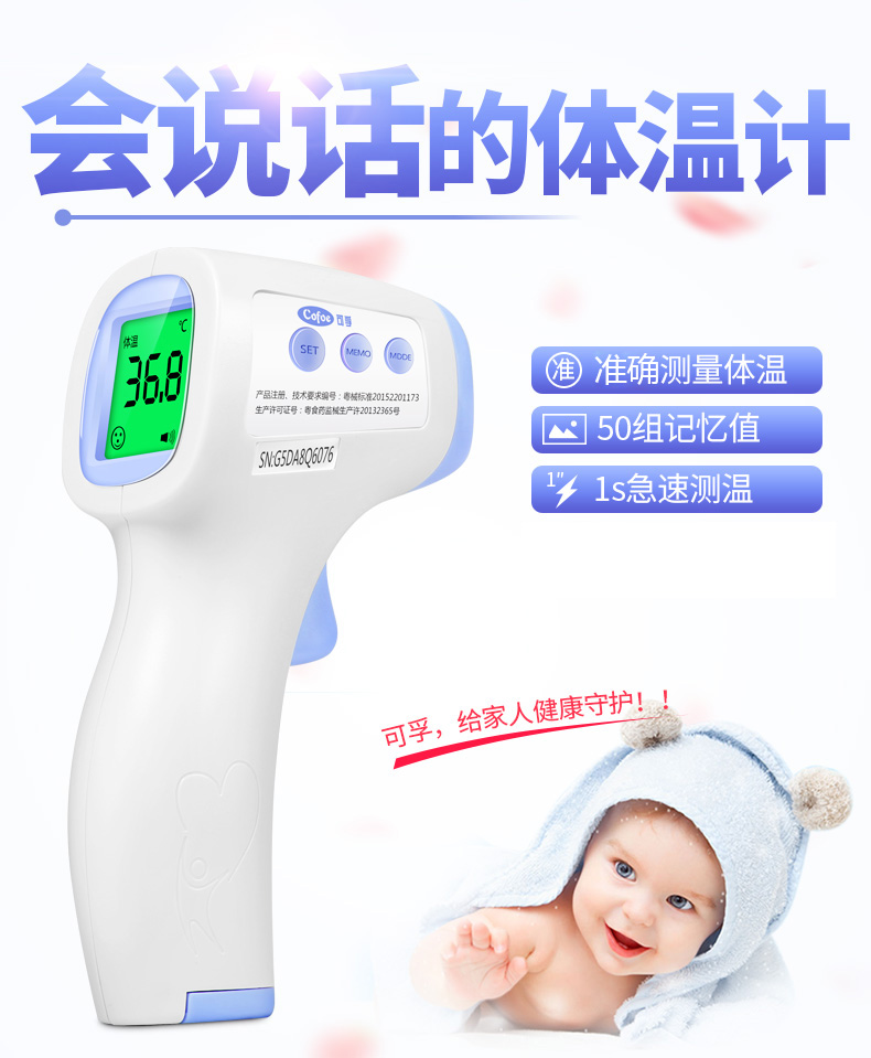 【送退热贴】顺丰发货,快人一步!医院也在用的体温计,三色背光,语音播报,精选进口探头,测量精准,对着宝宝额头滴一下,宝宝健康早知道~【赠运费险】