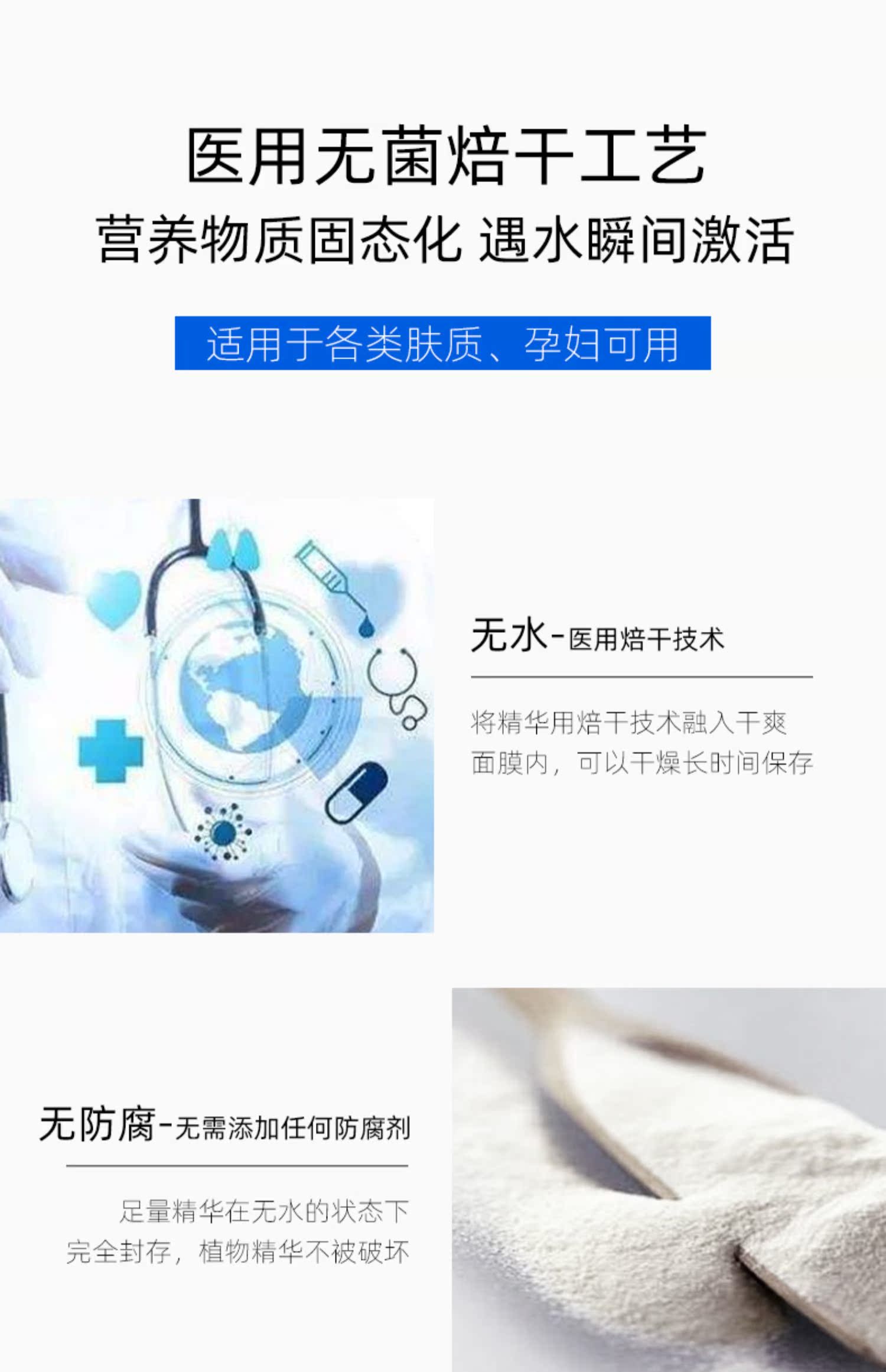 卉果美妆械字号医用干面膜!无添加,敏感肌放心用!含多种氨基酸+中草药+9重保湿成分,有效保湿补水,祛痘嫩肤~,还你健康水嫩肌!