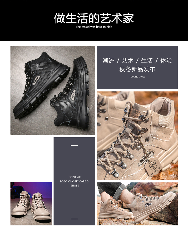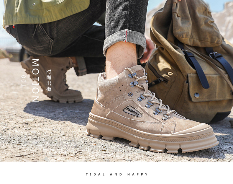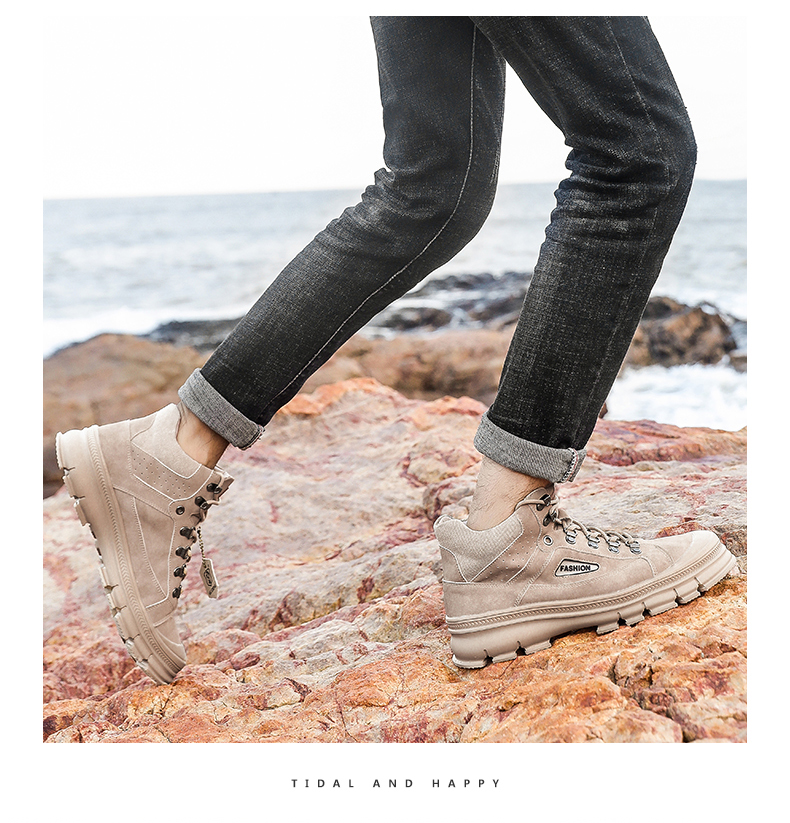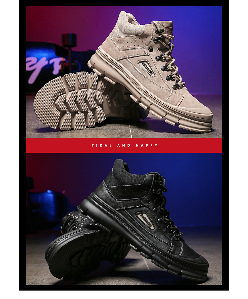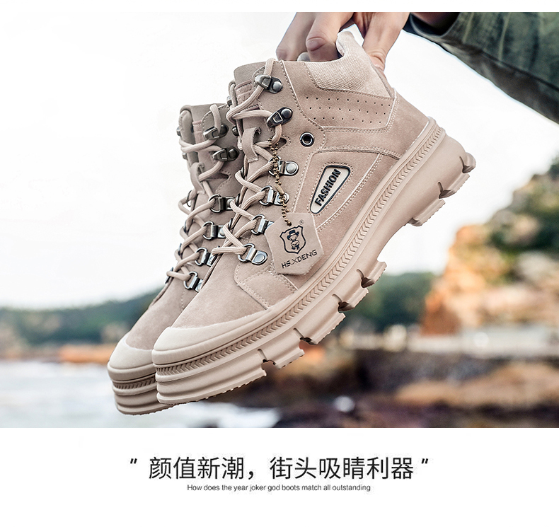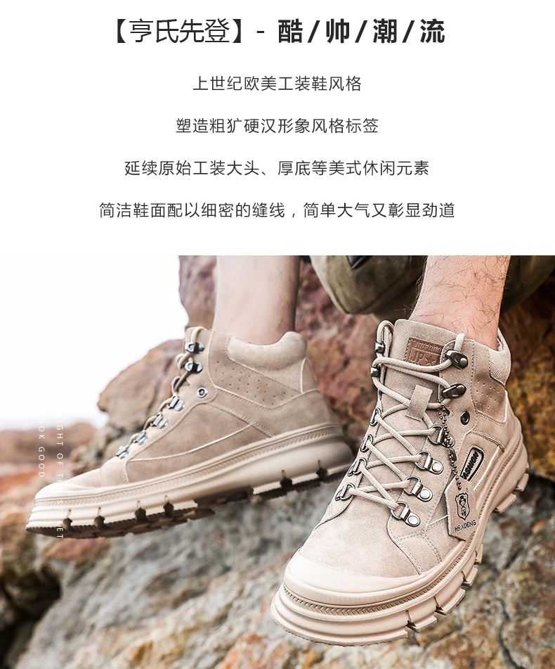 【亨士先登】男冬季潮鞋高帮马丁靴,采用包头工艺,不开胶轻便舒适、防滑耐磨、帆布拼接内加海绵条,柔软透气舒适、保护脚踝、加绒可选