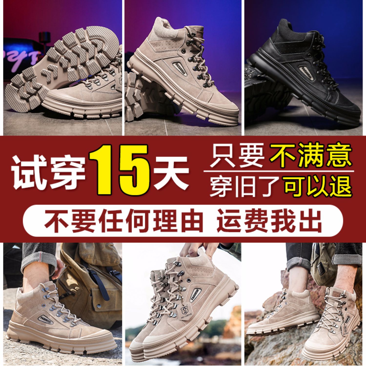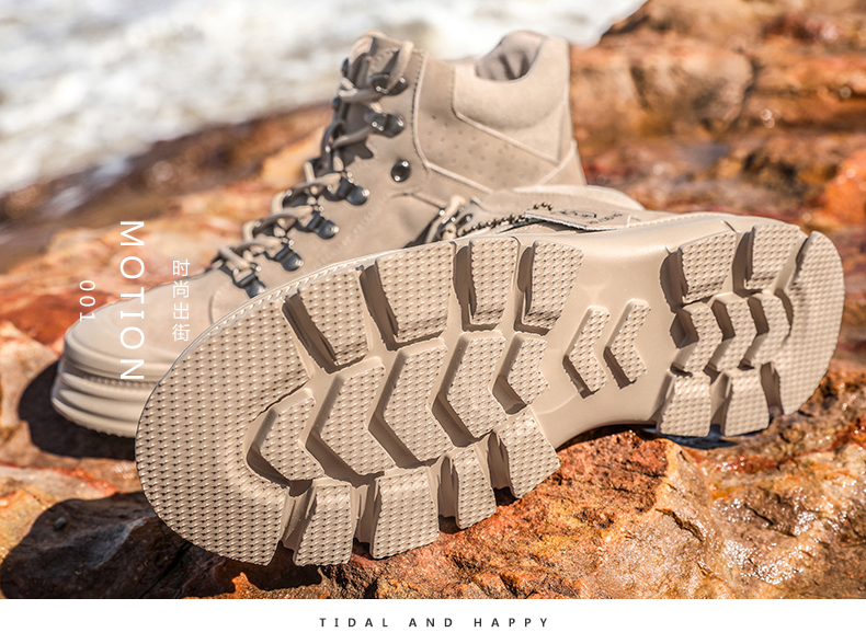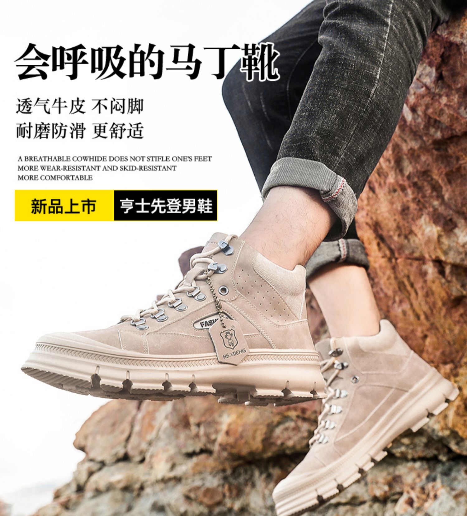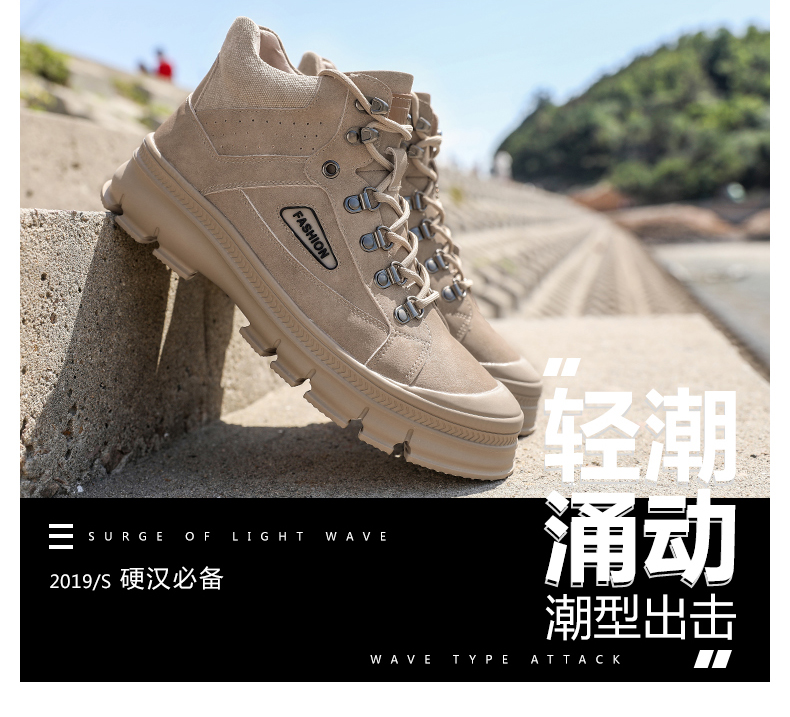 【亨士先登】男冬季潮鞋高帮马丁靴,采用包头工艺,不开胶轻便舒适、防滑耐磨、帆布拼接内加海绵条,柔软透气舒适、保护脚踝、加绒可选