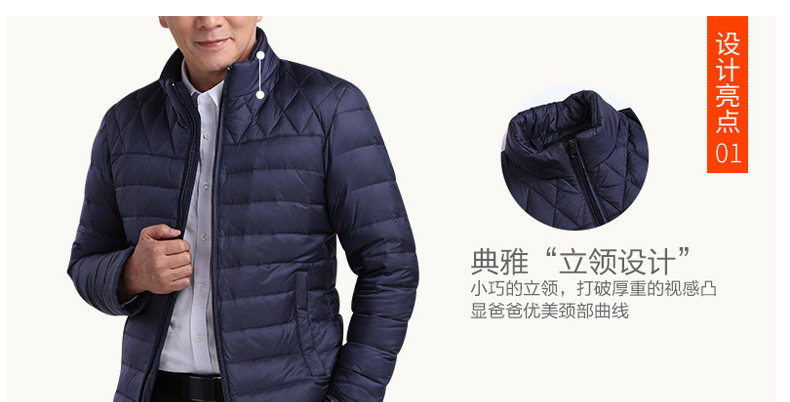 爸爸轻薄羽绒服,保暖舒适活力,我们做舒适的爸爸羽绒服,修身版型,70%鸭绒填充,保暖轻质,多种款式任意选择