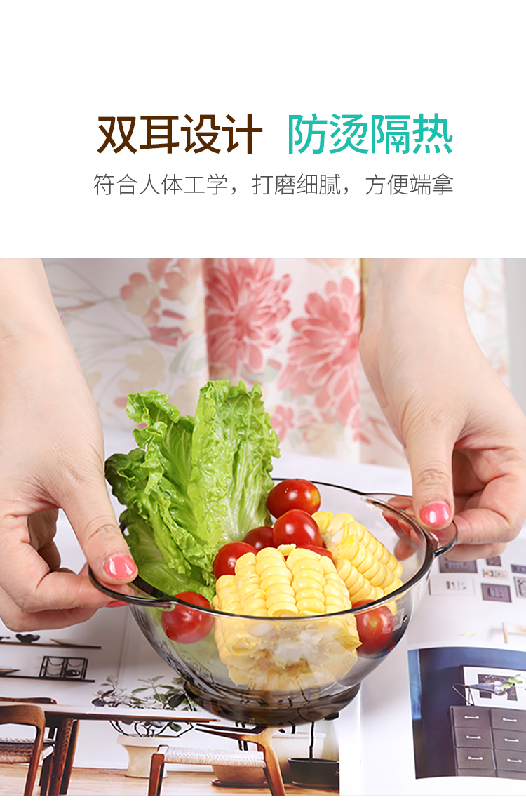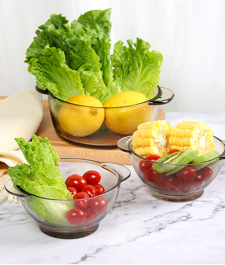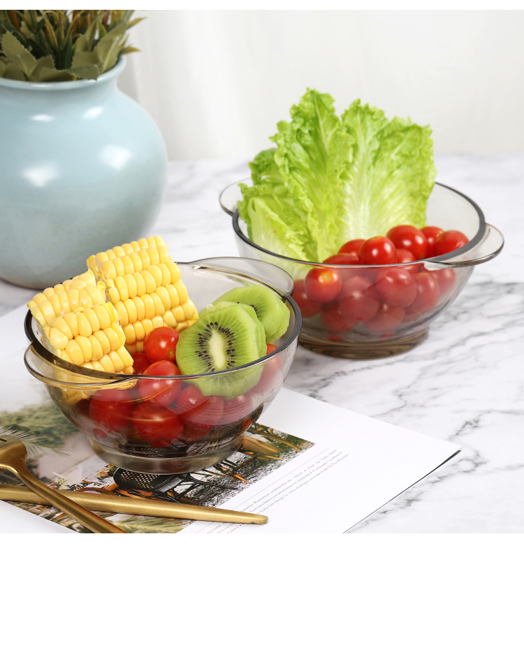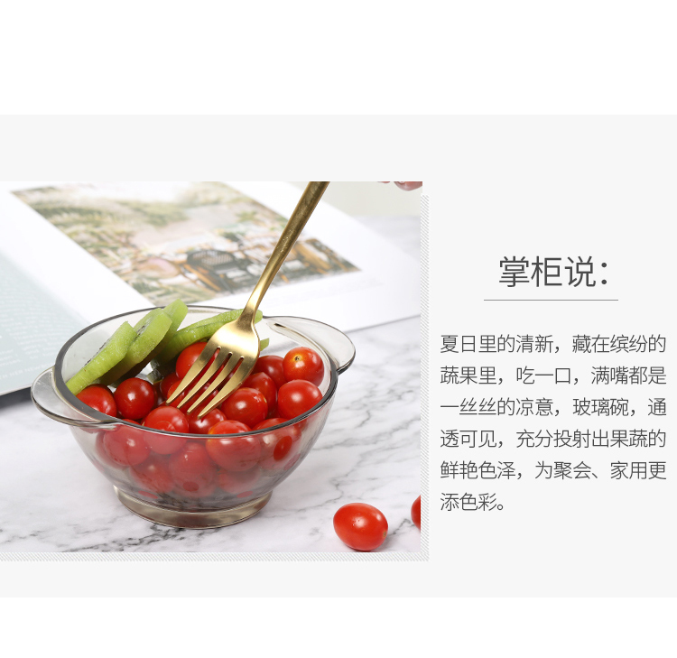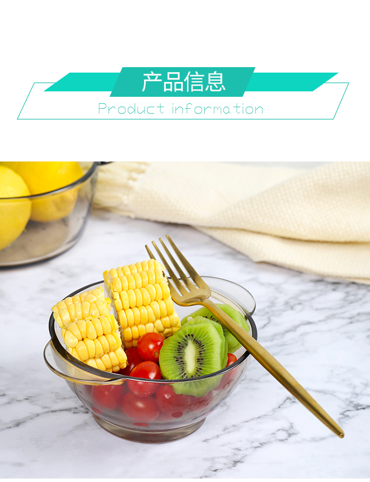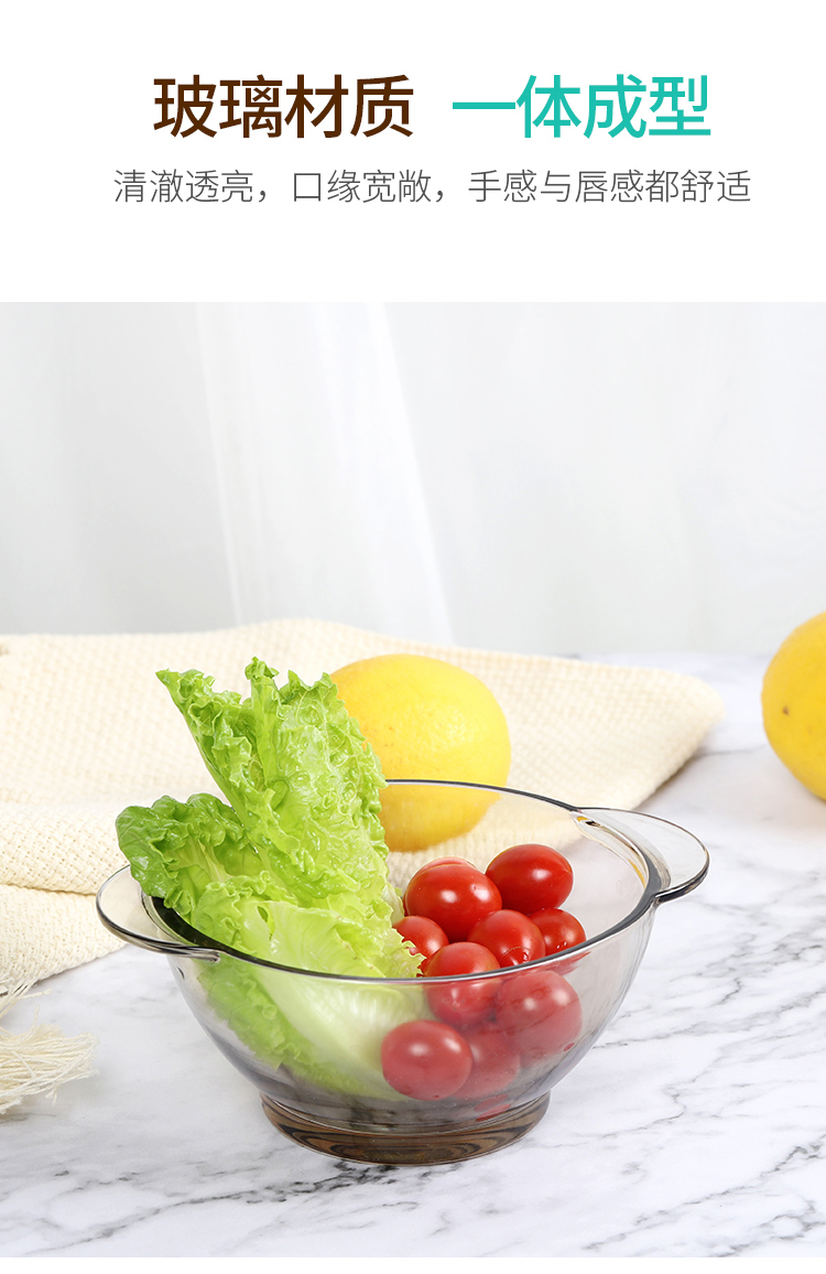 北欧茶色玻璃碗,超值2个装,采用优质材质,一体成型,厚重结实,双耳设计,防烫隔热,可适用微波炉,可冷藏,安全健康,让食物新鲜美味