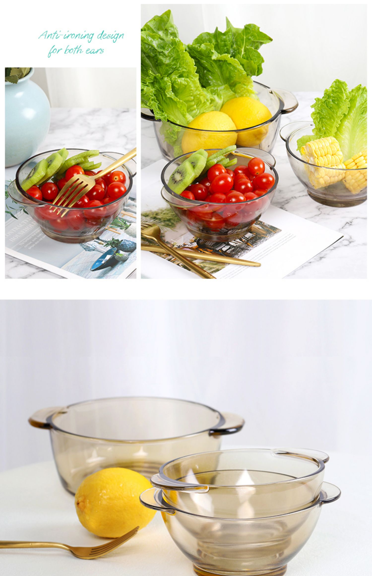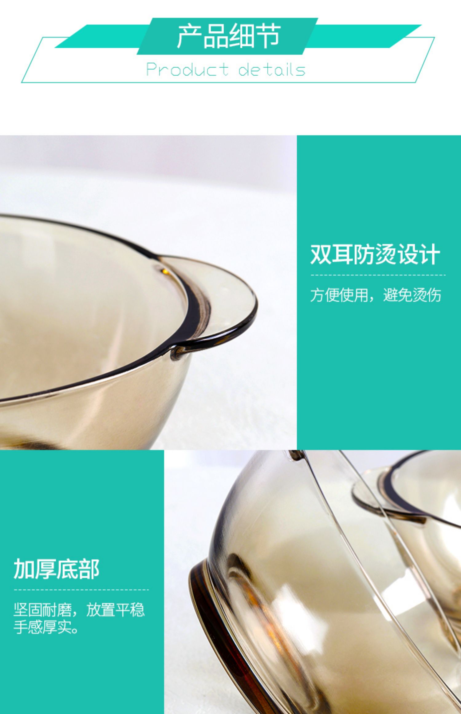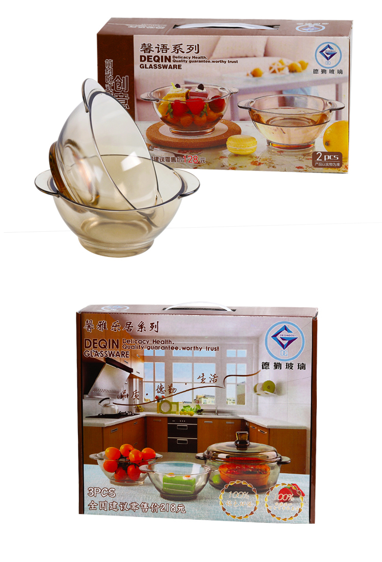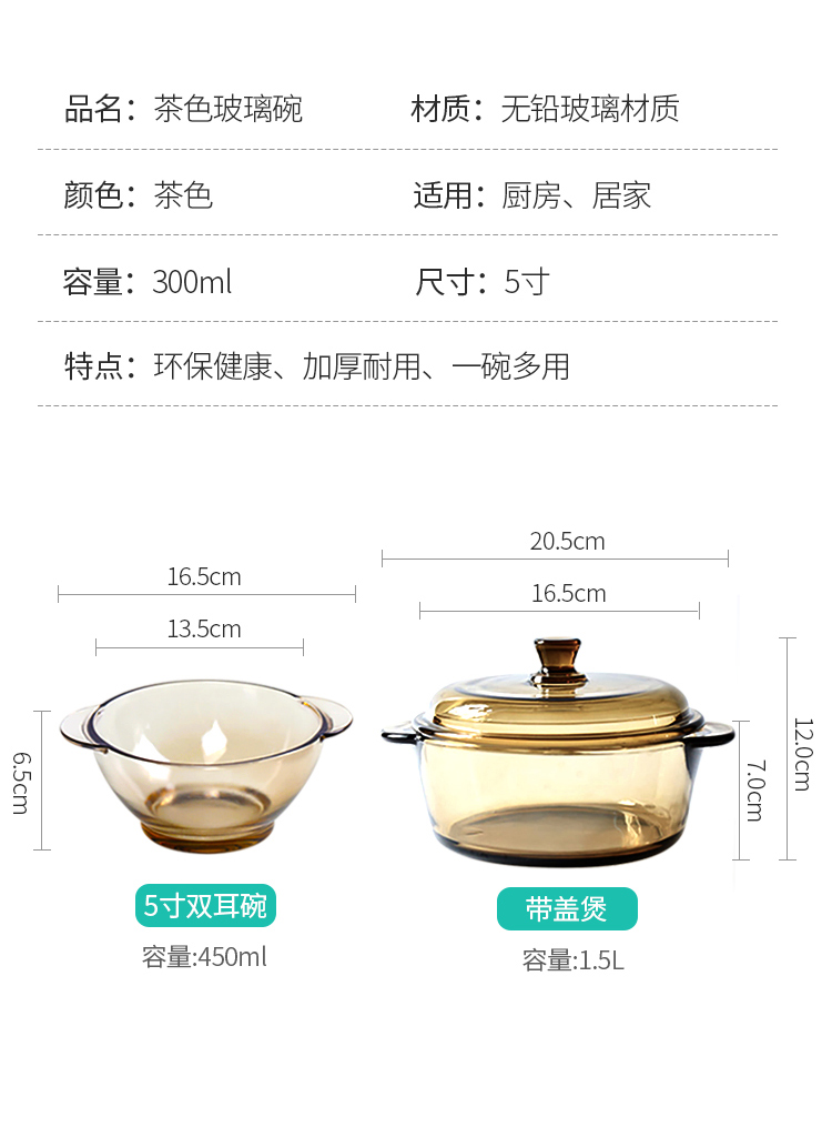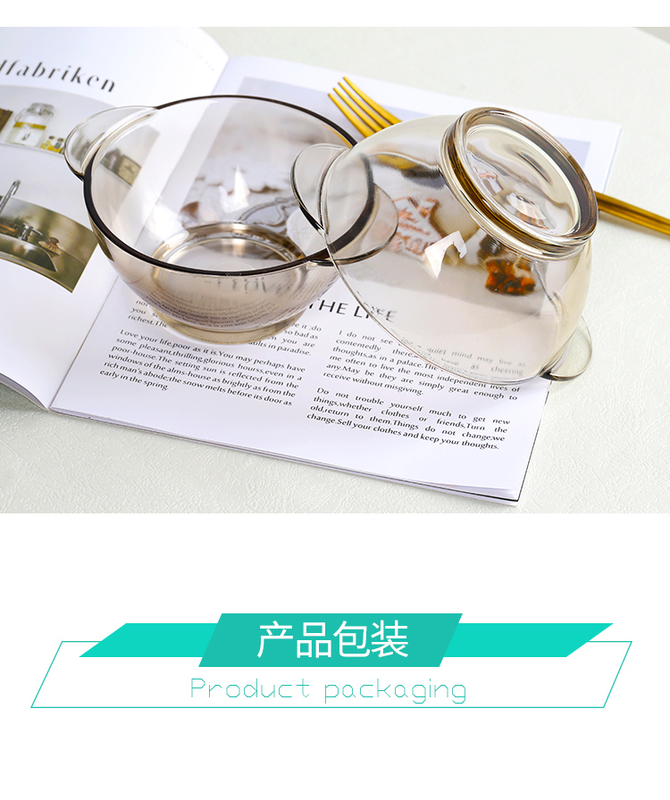 北欧茶色玻璃碗,超值2个装,采用优质材质,一体成型,厚重结实,双耳设计,防烫隔热,可适用微波炉,可冷藏,安全健康,让食物新鲜美味