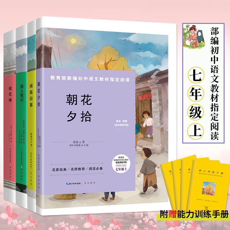 【全4册】朝花夕拾、城南旧事、镜花缘、猎人笔记,初中必读语文阅读课外书籍,无删减文学原著,青少年版课外读物,快入手吧!