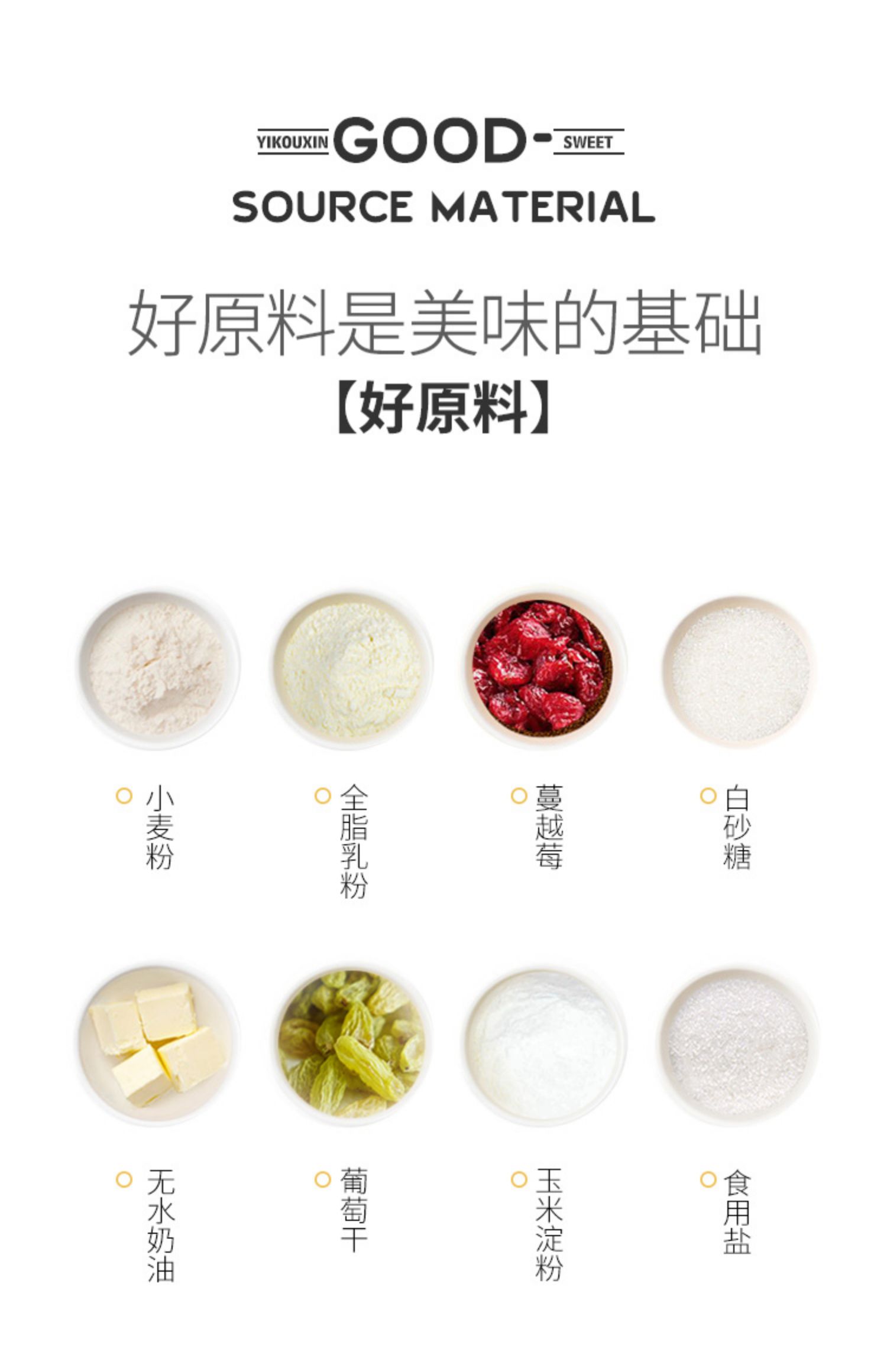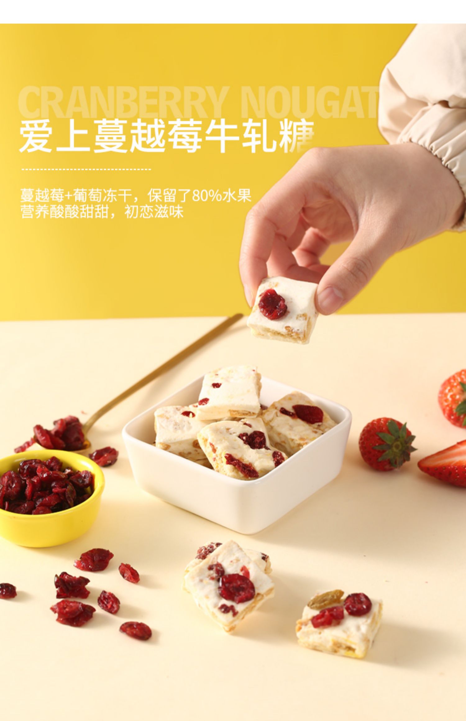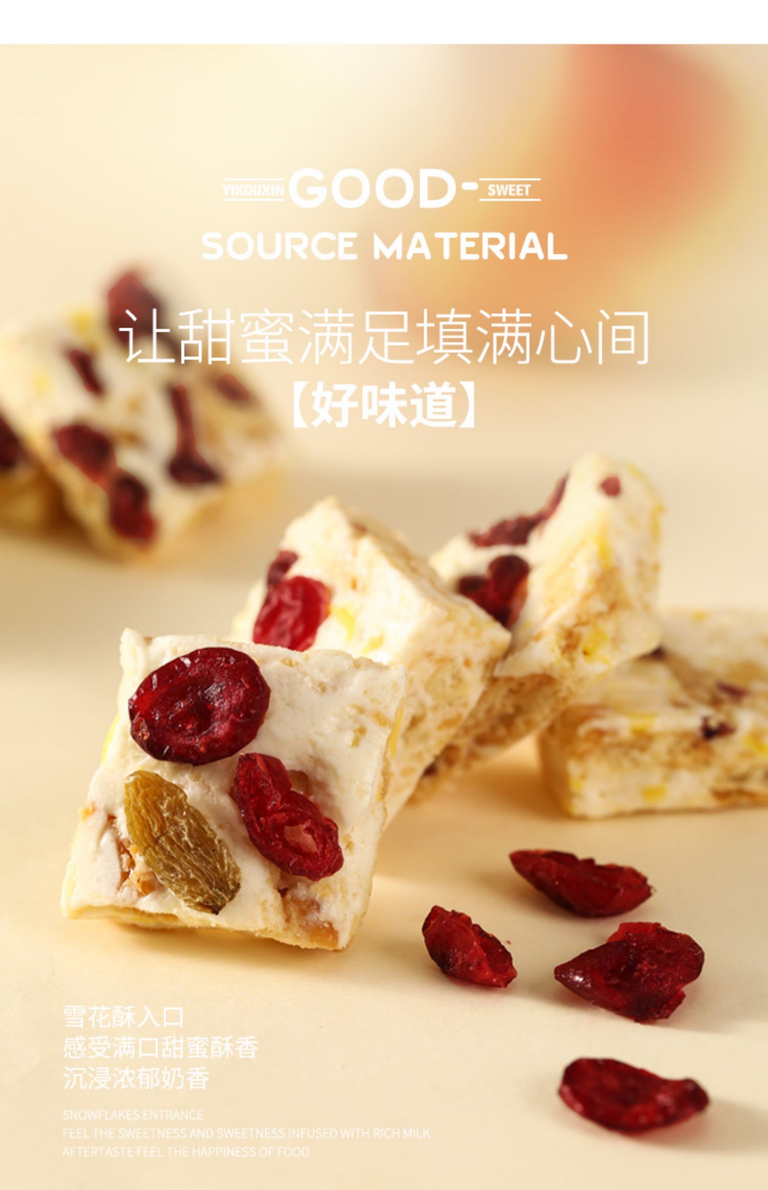 精选原材料手工制作,美国进口蔓越莓,精心烘焙,奶香味十足,酥脆爽口,甜而不腻,每一口都是好滋味,唯有美食与爱不可辜负!