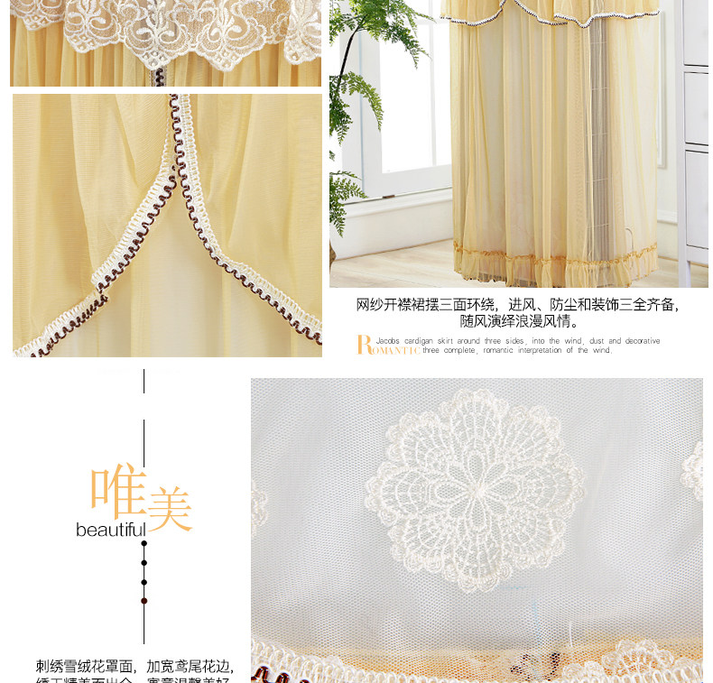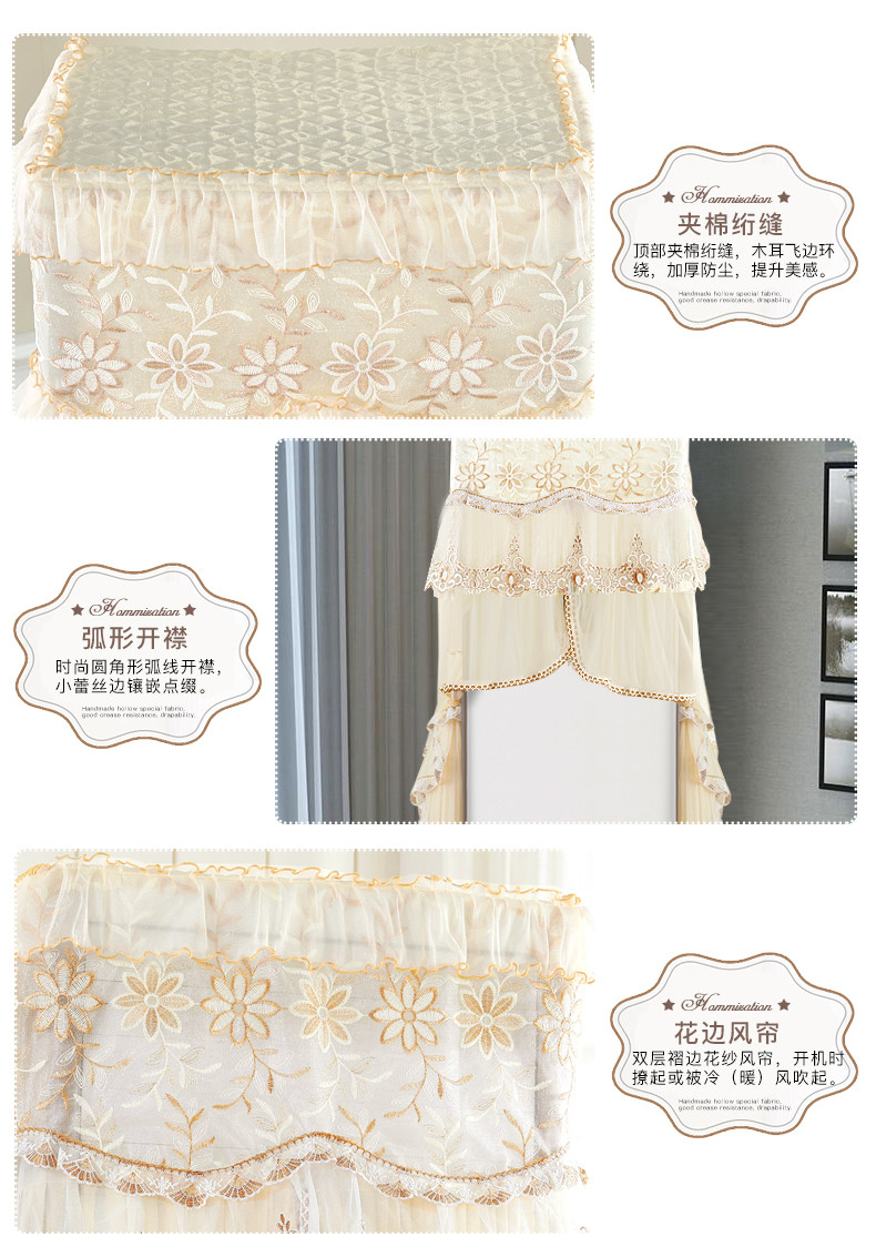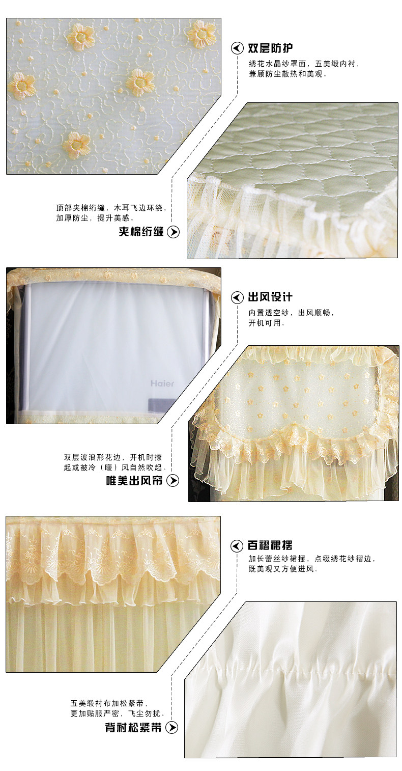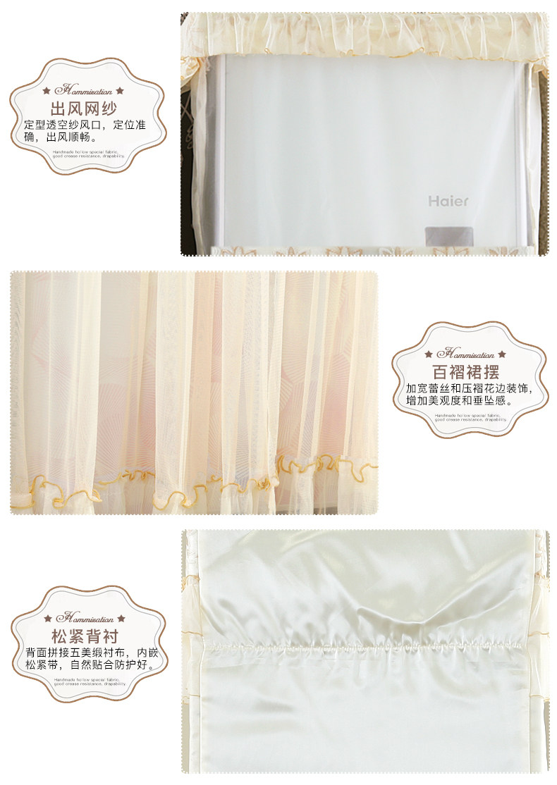 蕾丝绣边,时尚美观,优雅大方,防尘耐脏,使用方便,开机不需取下,延长空调使用寿命,带来不一样的生活享受!多种颜色款式可选,仙仙的美美哒!