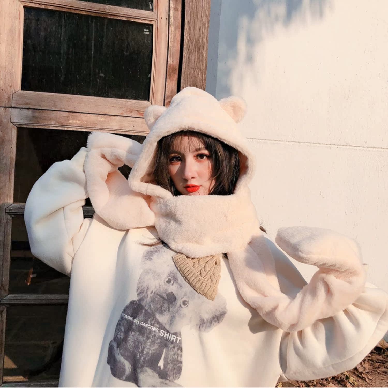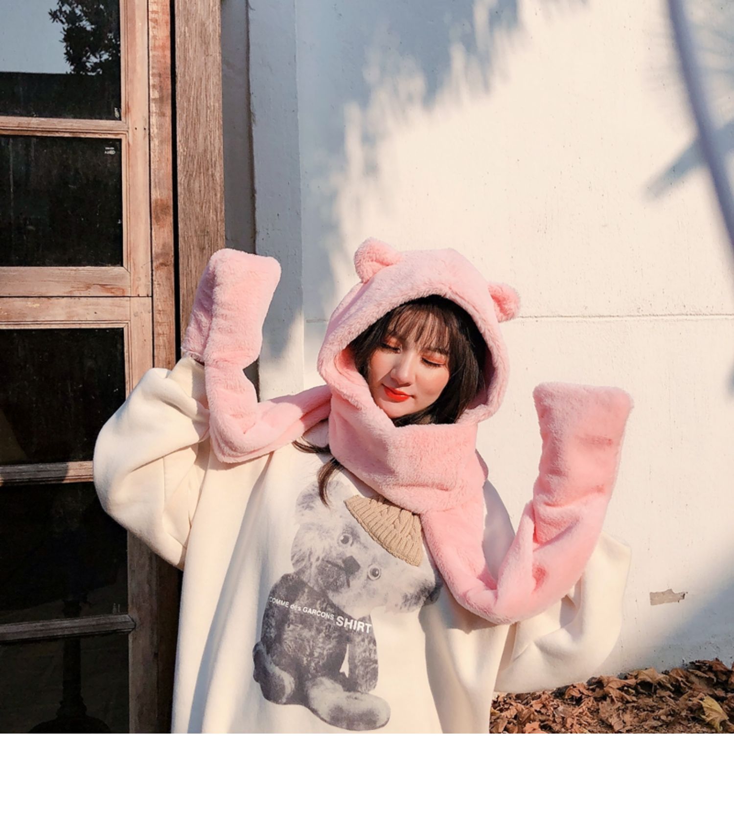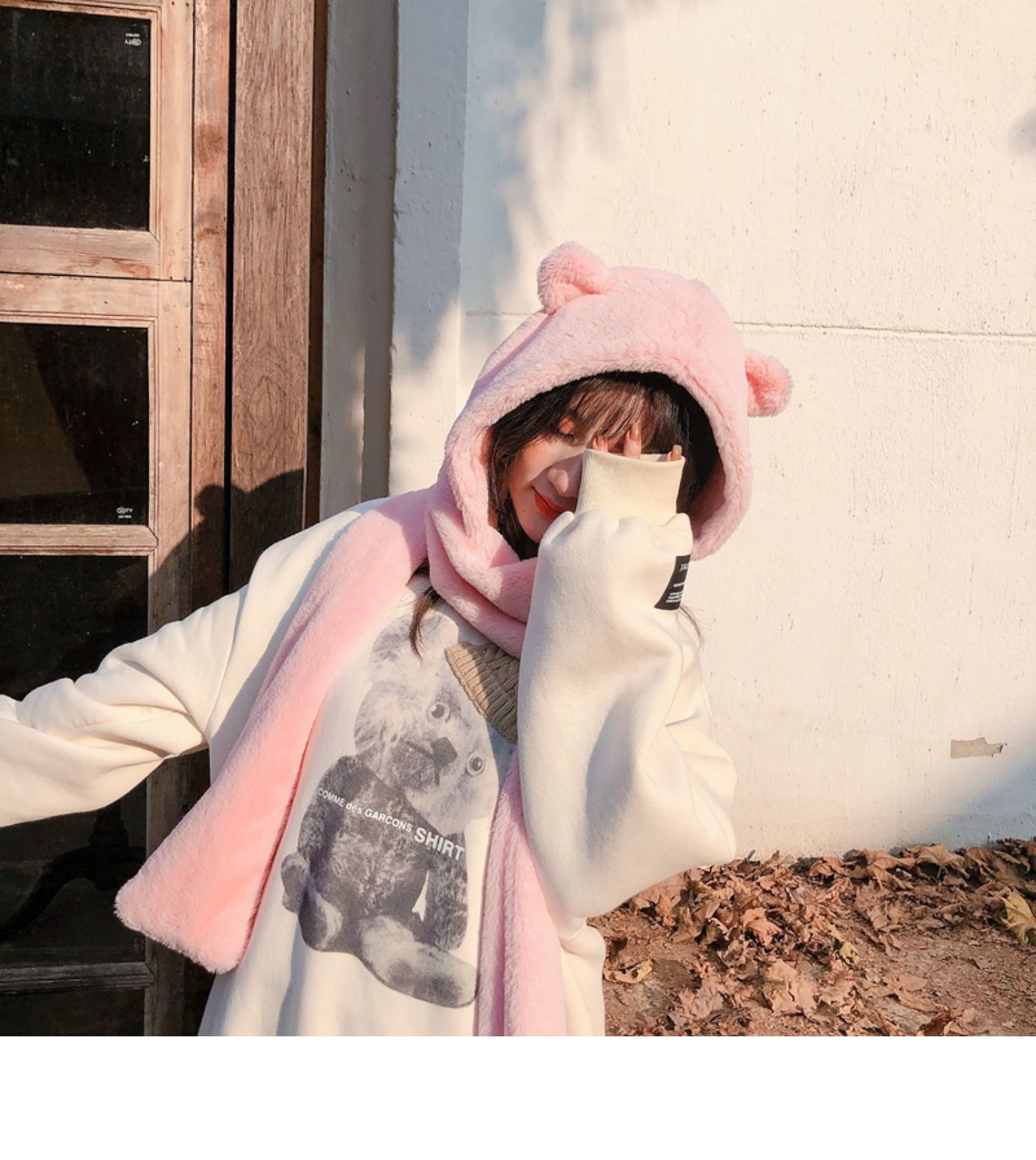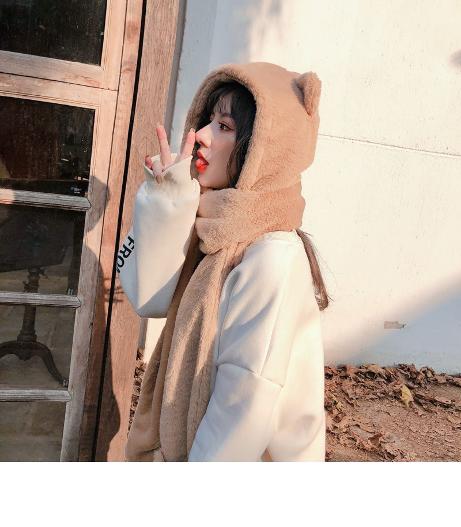 【冬季爆款】加厚加绒,小熊耳朵护脸脖套帽子围巾一体,做工精致,保暖围巾,时尚新品,舒适柔软,出行旅游,拍照必备,重点是舒适保暖,不起球,不掉色,多款可选,时尚百搭。【赠送运险】