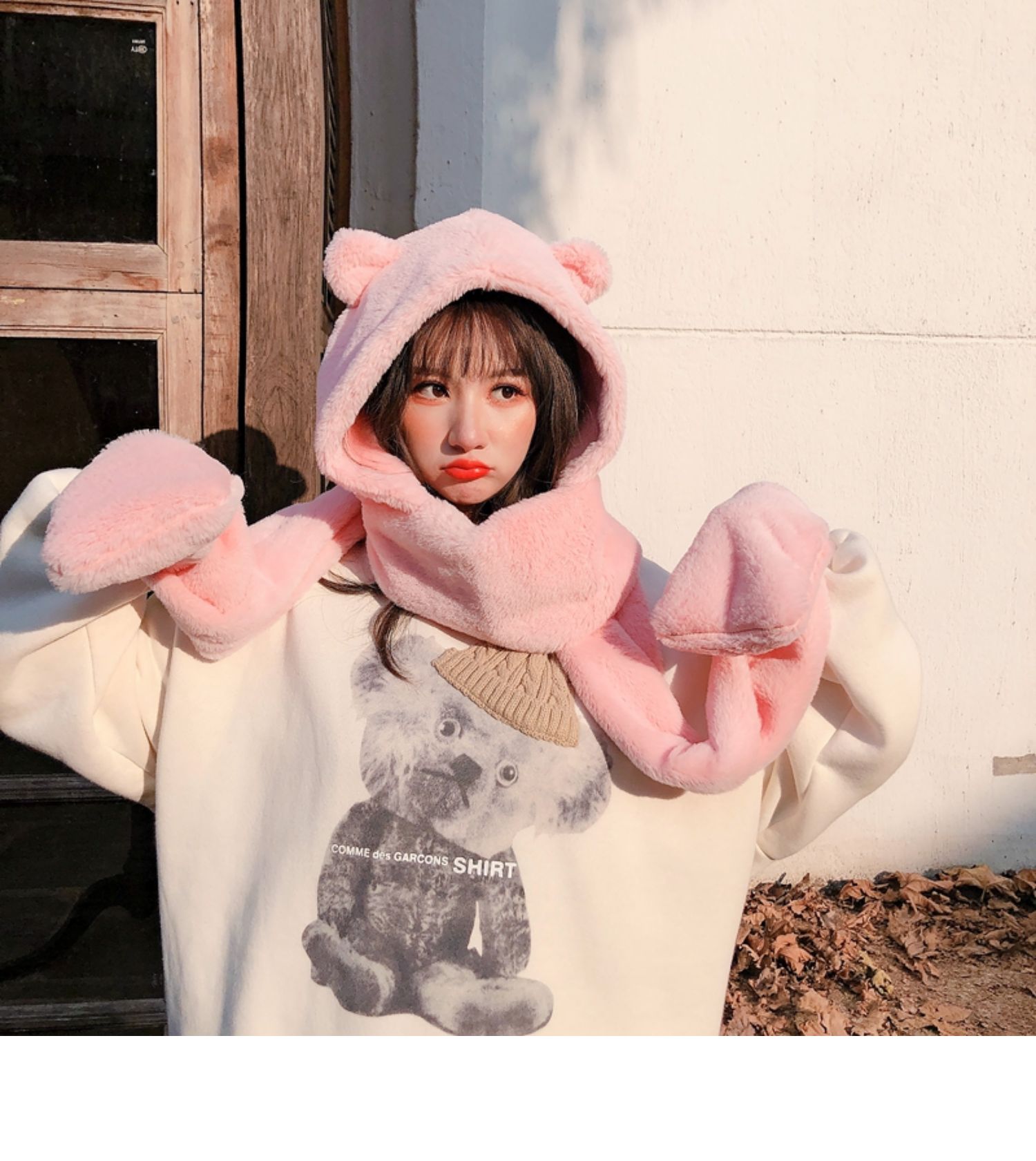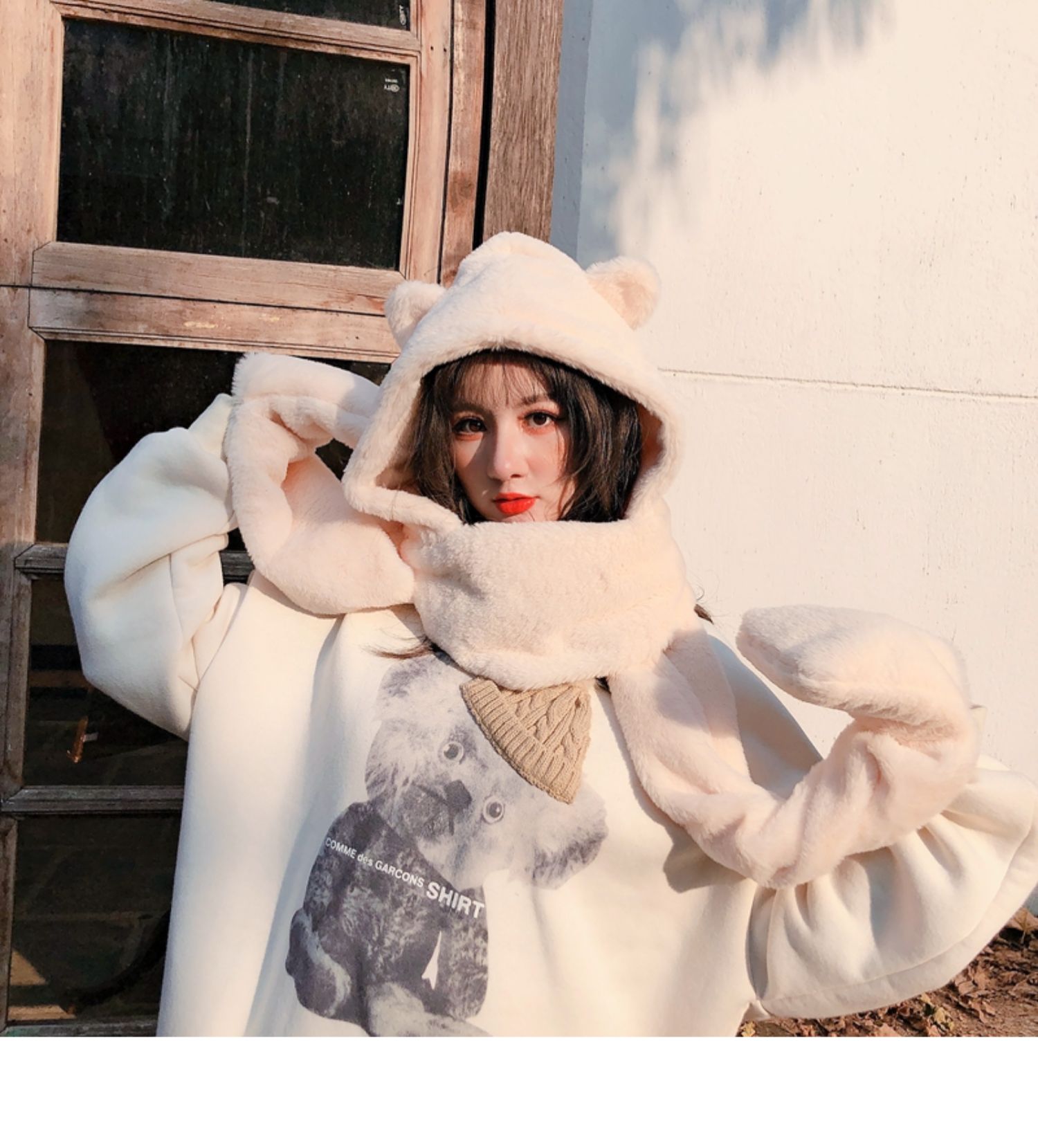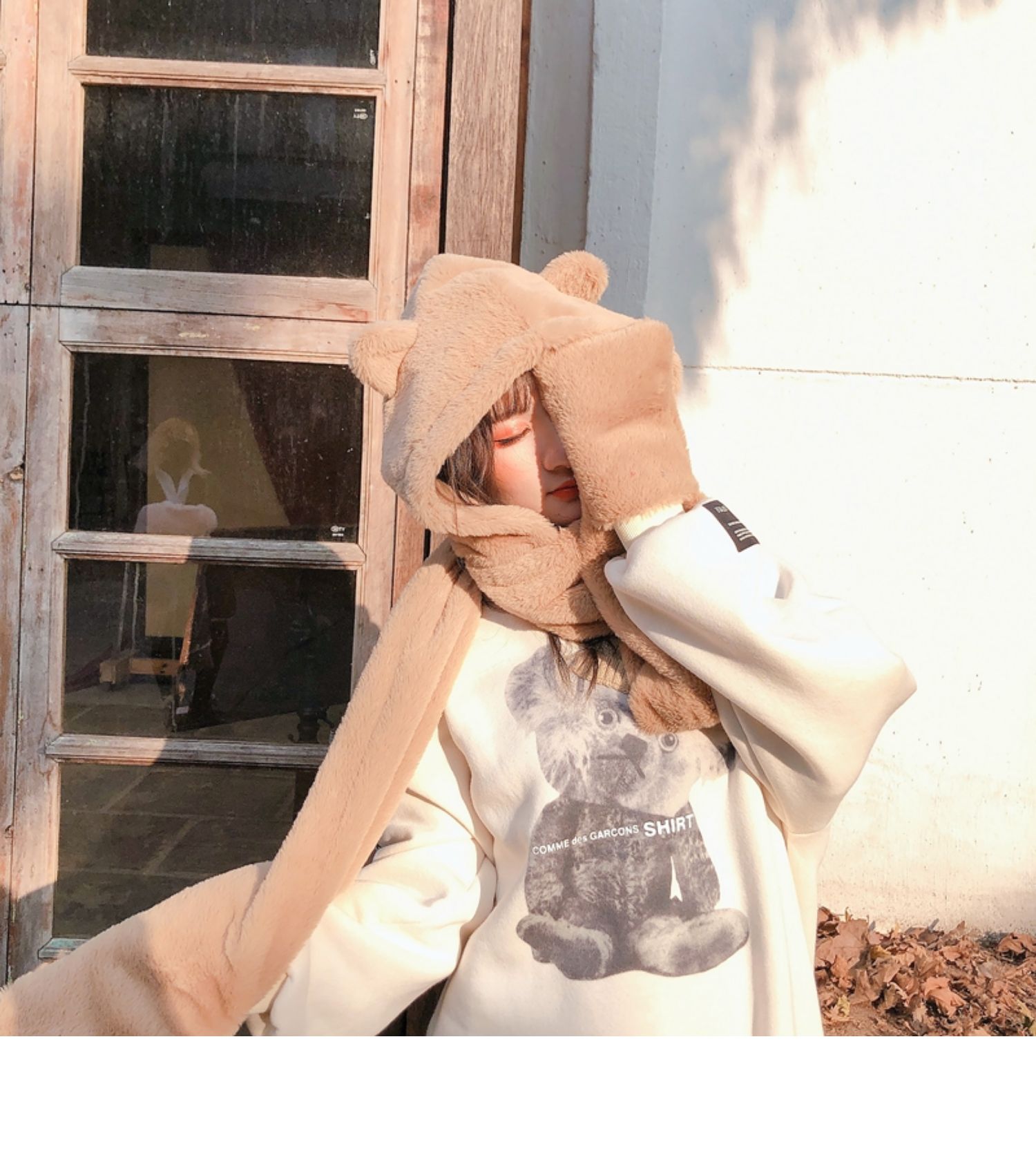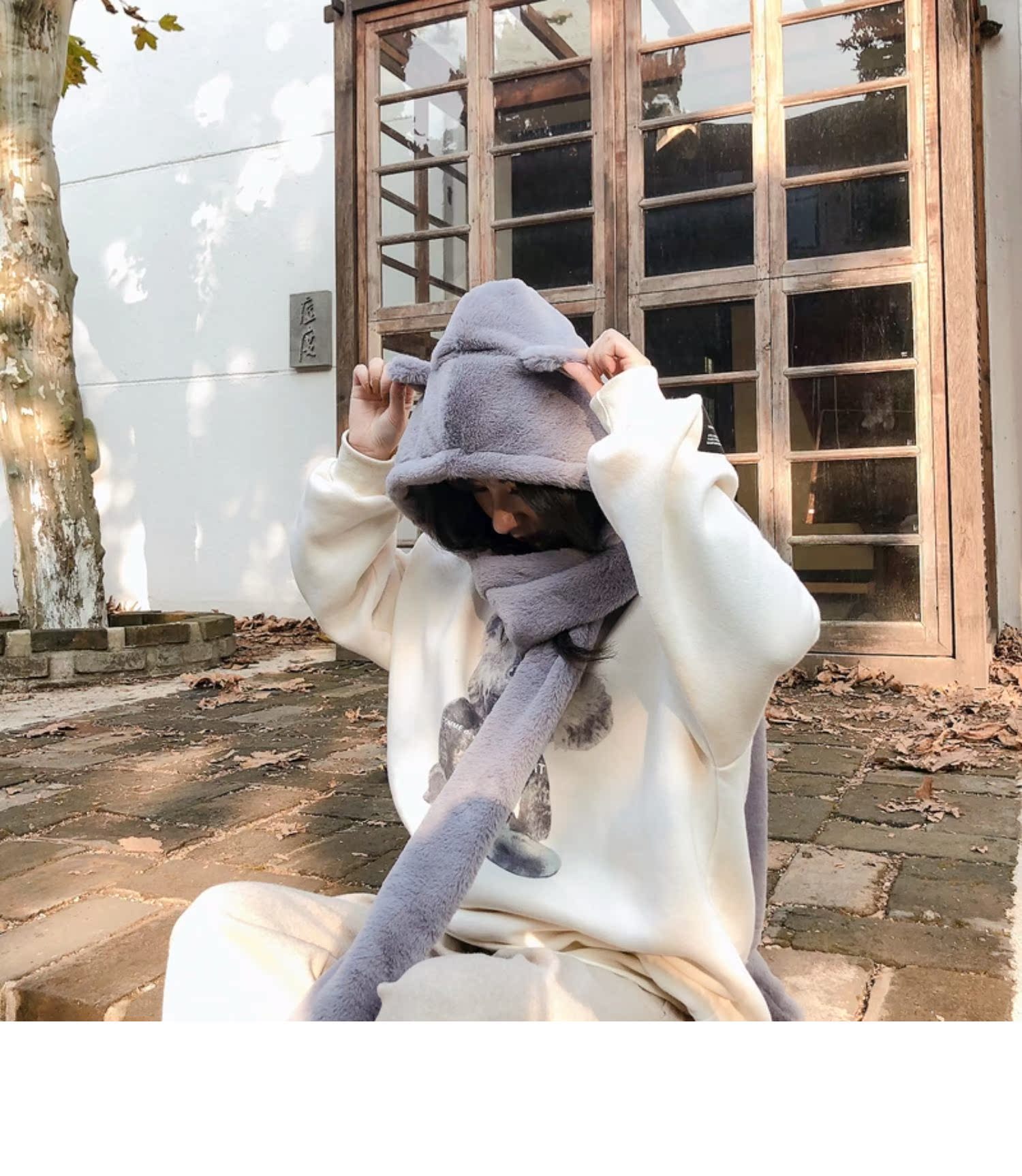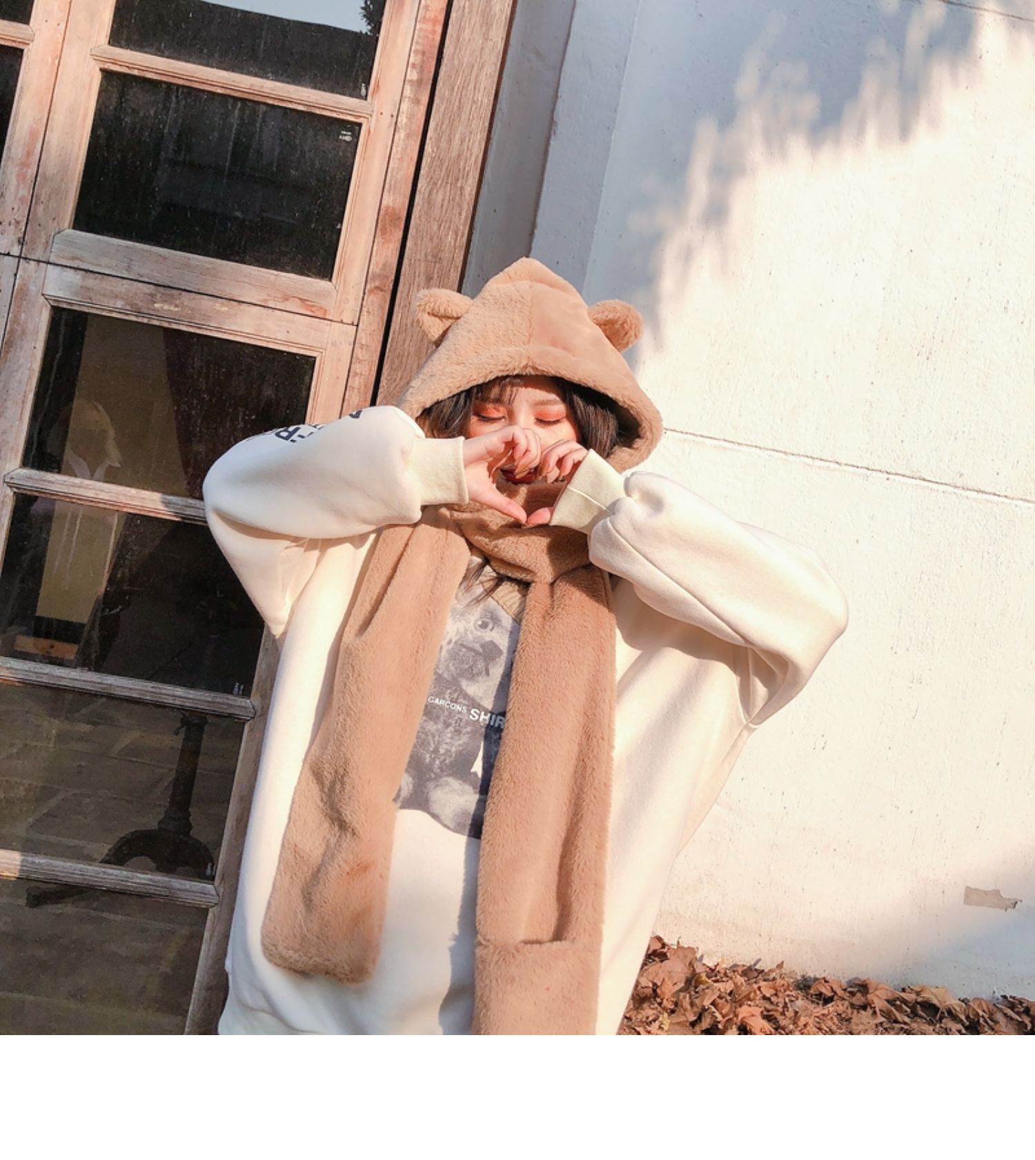 【冬季爆款】加厚加绒,小熊耳朵护脸脖套帽子围巾一体,做工精致,保暖围巾,时尚新品,舒适柔软,出行旅游,拍照必备,重点是舒适保暖,不起球,不掉色,多款可选,时尚百搭。【赠送运险】