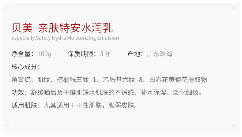 贝美100g敏感肌舒缓修护保湿乳