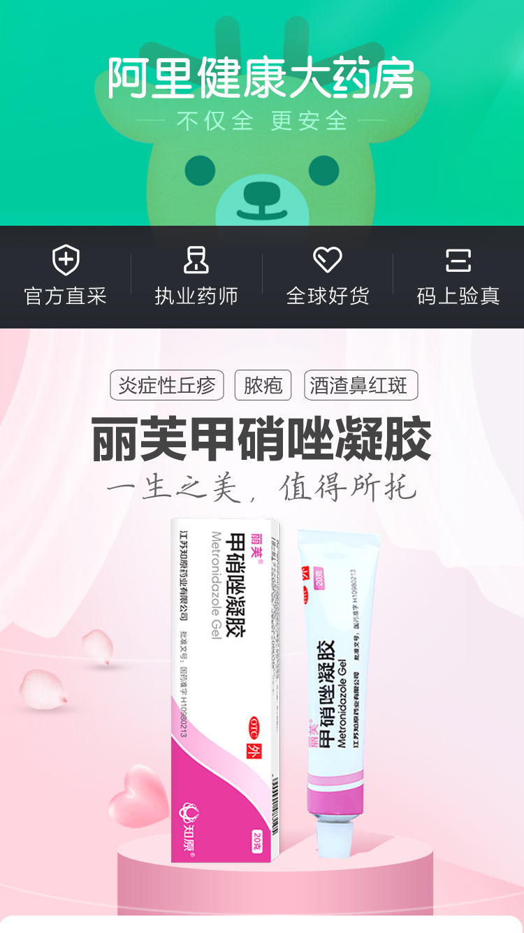 【拍两件】【拍两件】【拍两件!】【销量10w+,热销190万支的高评分甲硝唑凝胶!】阿里大药房直营。黑头、毛孔、痘痘、炎症,肌肤问题-安全治疗-效果显著。一生之美,值得所托。