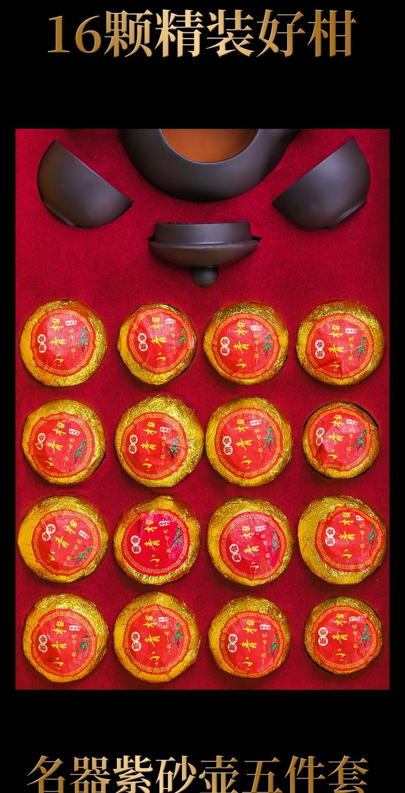 【下单到手小青柑16个装+1壶4杯礼盒装】精选优质小青柑,皮厚质硬,油皮粒密实清晰可见,入口醇厚滑爽,回味甘甜口感强烈,茶汤清香,色泽红润深沉,经久耐泡,可以送亲友,送长辈~