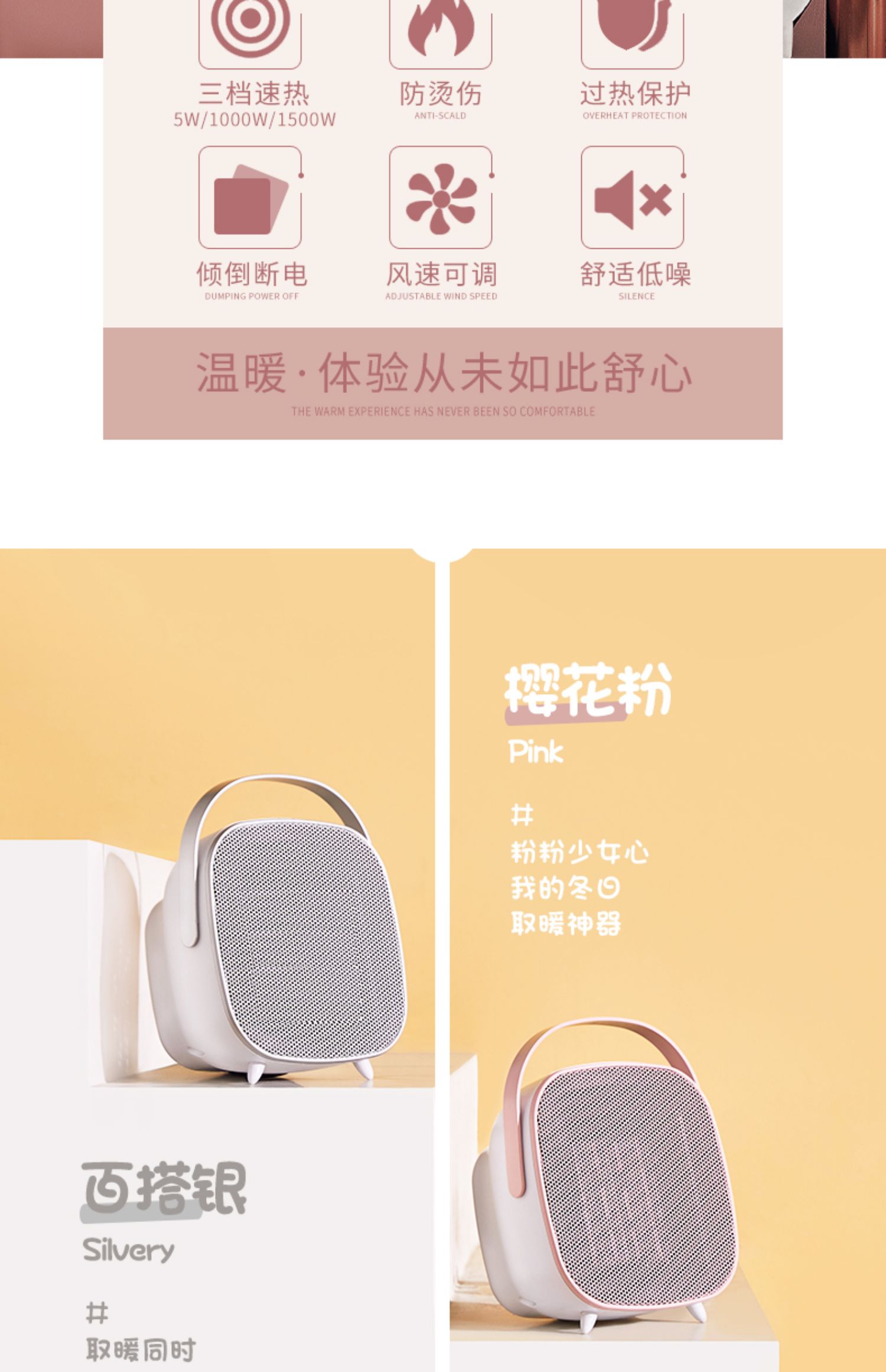 日本大牌!SK迷你暖风机,烘脚烘手小太阳取暖器,采用陶瓷PTC发热体,1500W速热,取暖无需久等,智能温控,3档可调,无明火,防烫伤,多重保护,安全无需操心!便捷手提,一键开启暖冬模式!【赠运费险】