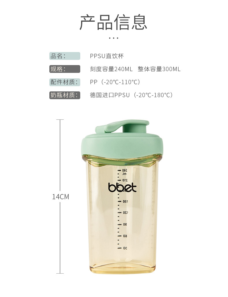 多功能水杯,德国进口PPSU材料,耐高温安全无味,防漏防摔防呛,搭配重力球,任意角度喝无阻,喝水喝奶两用,吸管采用食品级硅胶,柔软不伤牙龈,品质有保障。