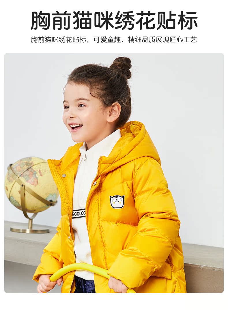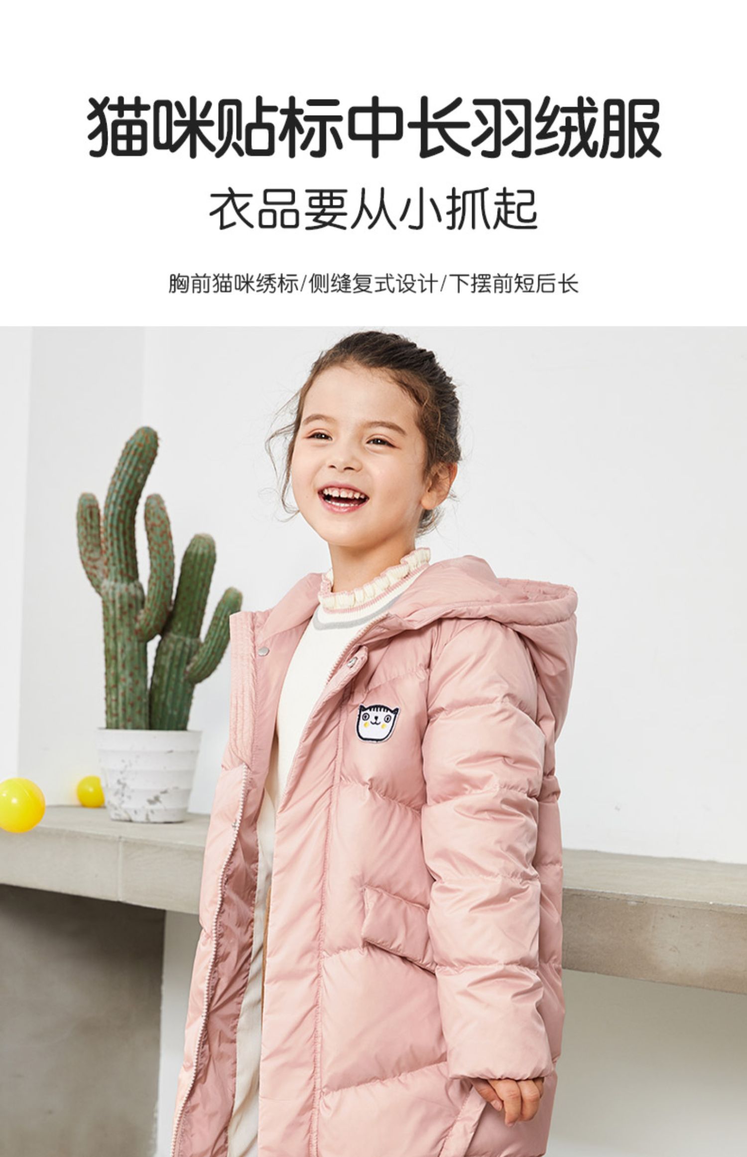 【高梵好品牌,新低价!!!速抢呀~】高梵采用95%白鸭绒,含绒量超高,温暖茧型,基础连帽设计,斜插口袋,经典易搭,多色可选,可爱猫咪贴绣花贴标!留住宝宝的暖萌童颜。【赠运费险】