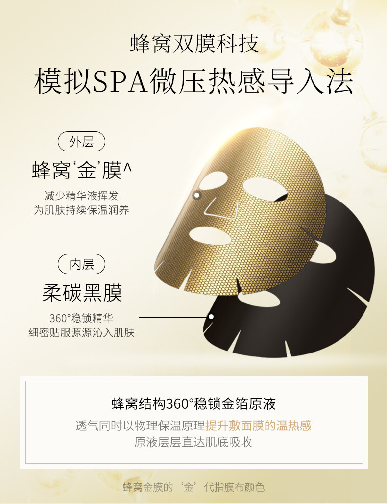 【拍3件,发3件!第2、3件0元!!!】蜂窝金膜+柔碳黑膜的双膜设计,多维度抚平干细纹,98%纯度真金+多肽,微压导入精华!抗初老必备!15分钟打造“抛光肌~不再惧怕初老肌!