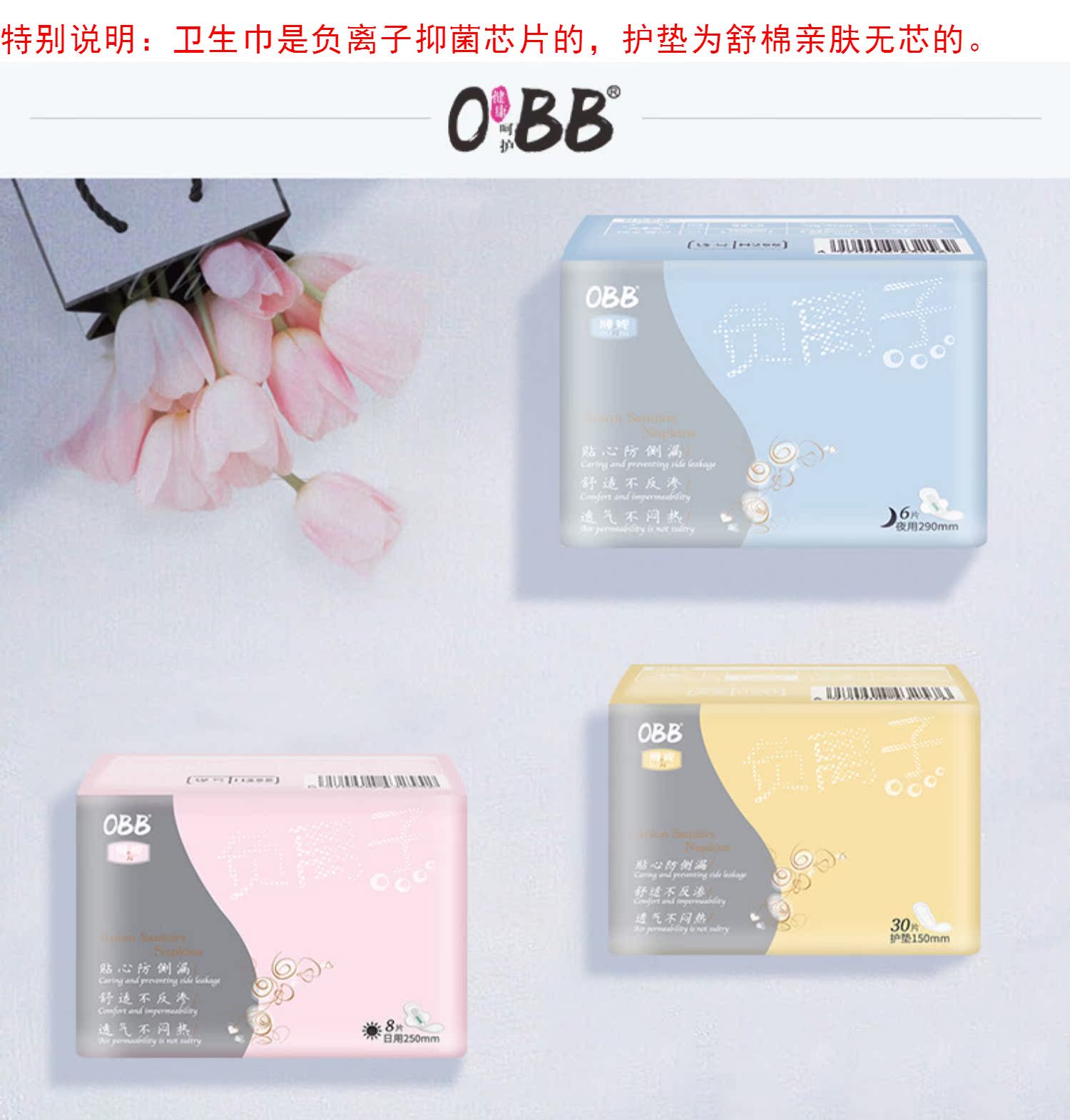 负离子卫生巾组合60片,官方店品质保证,亲肤柔棉,无荧光剂0致敏,负离子芯片,更安心,轻薄贴合,瞬吸防漏,一款会呼吸的卫生巾!释放3倍活磁负离子,你值得被温柔呵护!