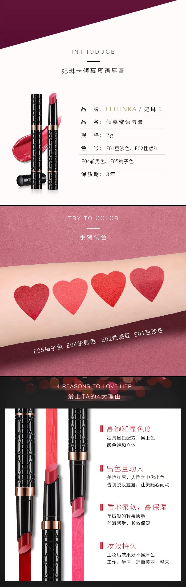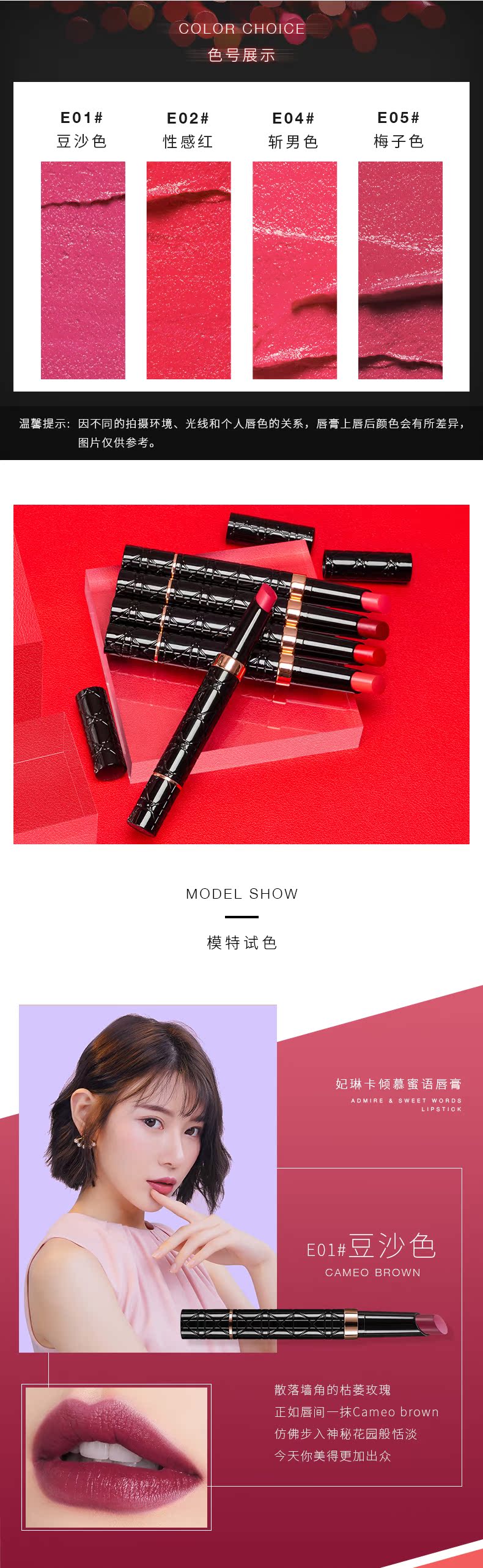 绚丽恒彩持久保湿口红,轻柔质地,浓郁显色,质地不拔干,持久保湿不脱色,高级雾面哑光,一抹气场全开!不挑肤色,黑黄皮也钟爱~