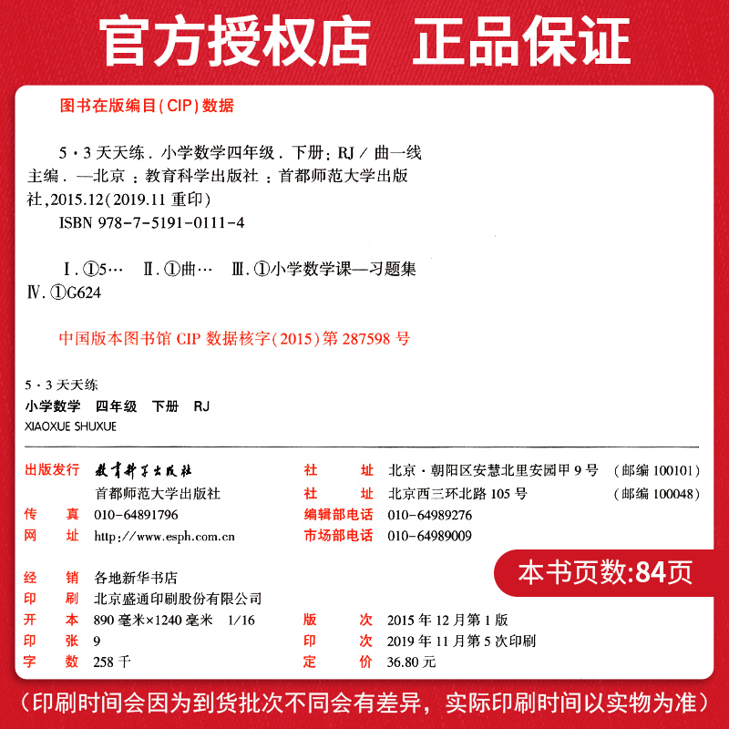 四年级口算天天练RJ人教版,掌握知识技能,培养学生思考能力,增强应用意识,快速掌握学习方法,学习更轻松!【赠运费险】