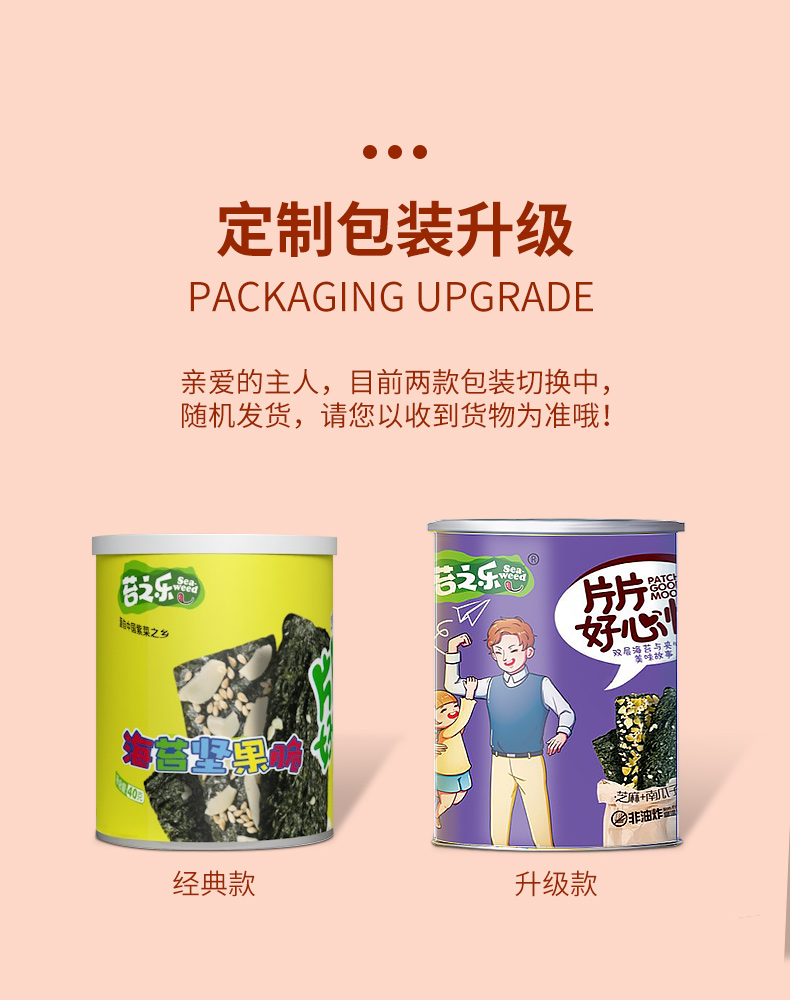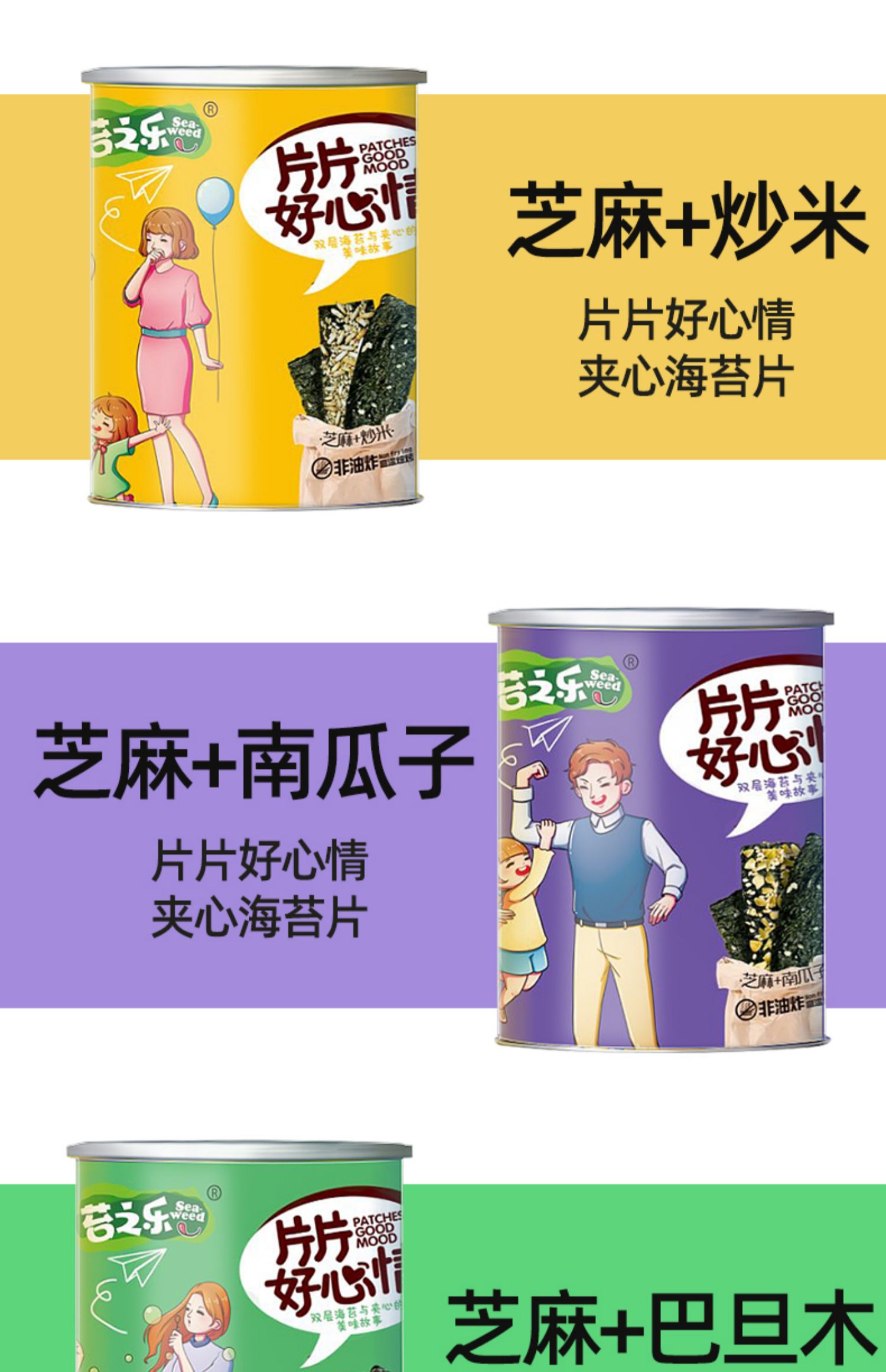 【拍2件21.9元,发6灌,超值】线下卖场华润万家/一罐14.9元,精选霞浦头水紫菜,鲜味足!口感超好,脆脆香香的那种!片片香脆,层层有料,南瓜子、巴坦木两种夹心可选,孕妇儿童皆宜的绿色食品!