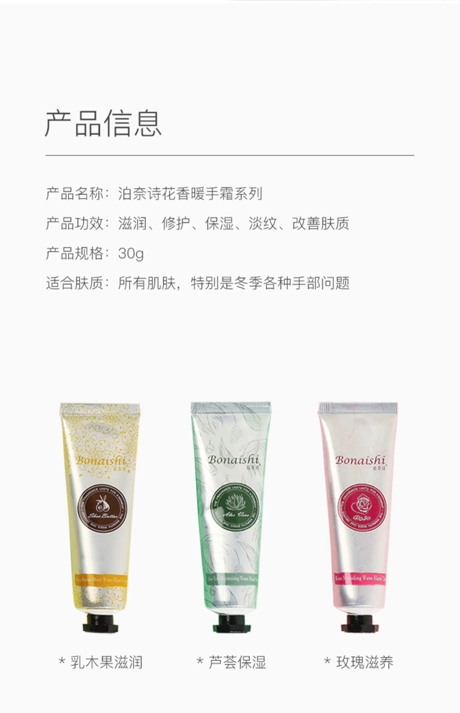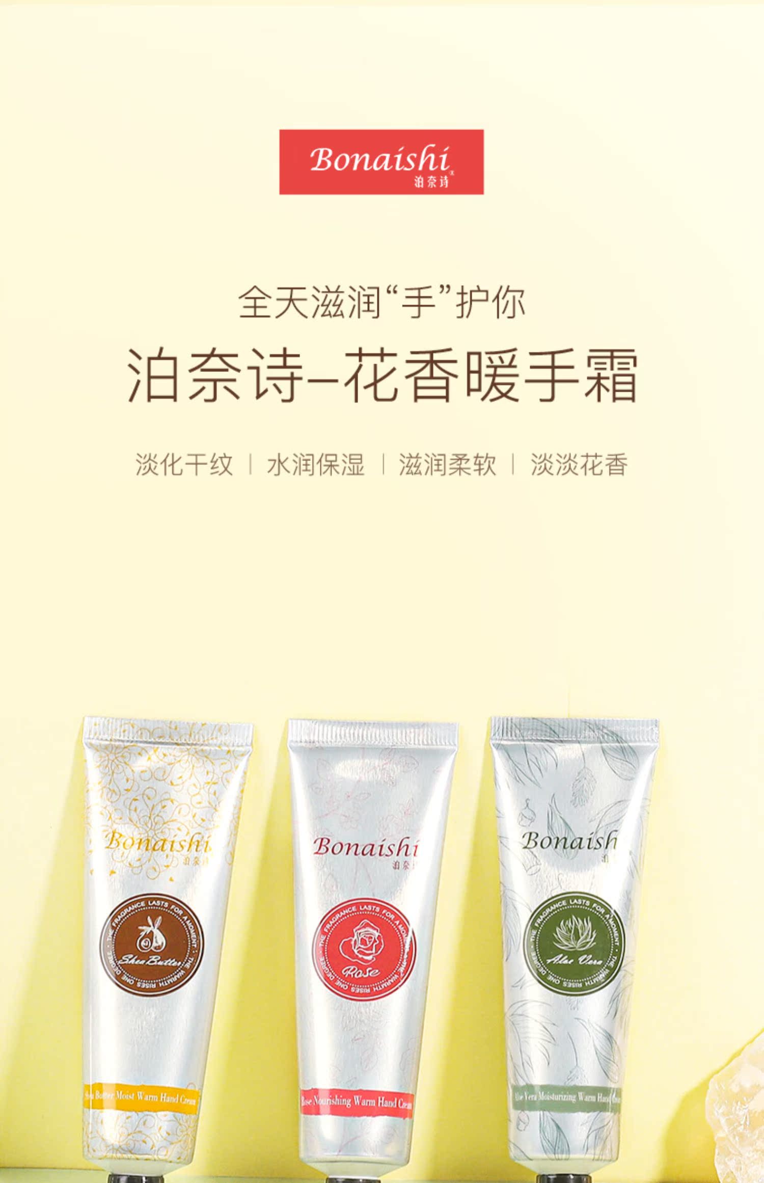 泊奈诗护手霜花香暖手霜淡化干纹,水润保湿,滋润柔软,会发热的护手霜,精选三种花果,萃取精华,给及手部多重呵护,深度修护滋养