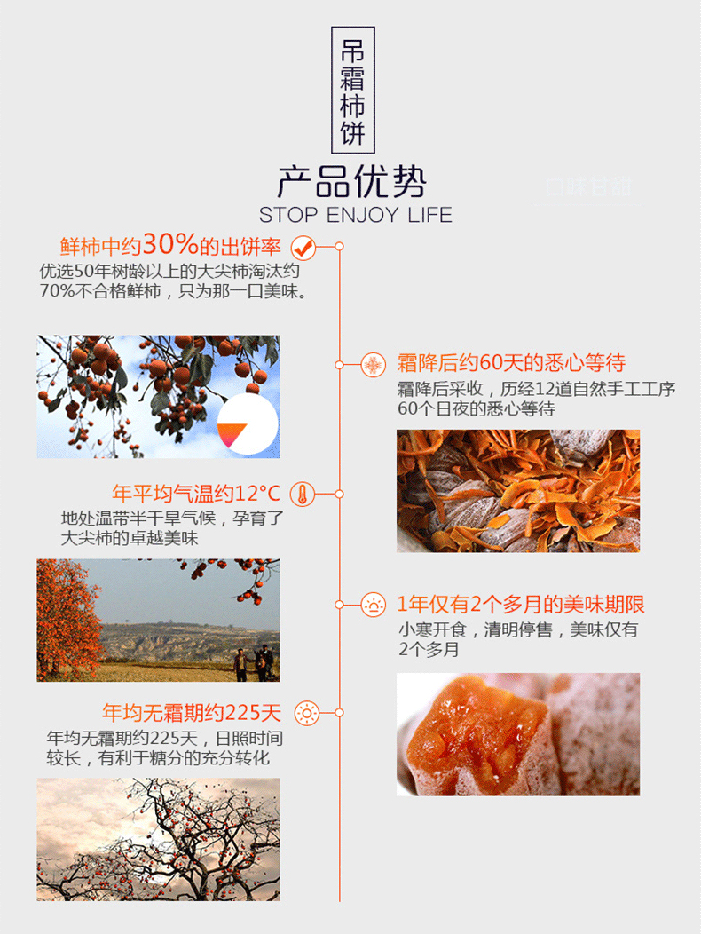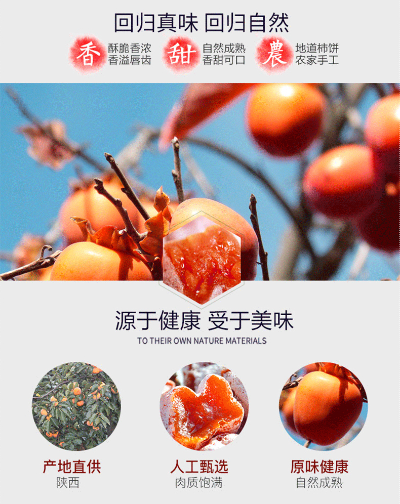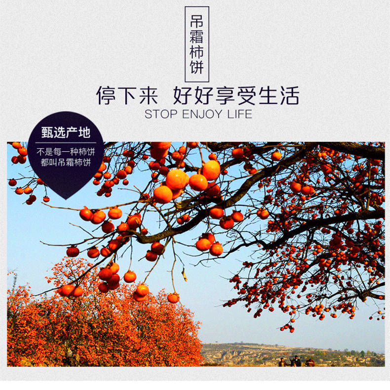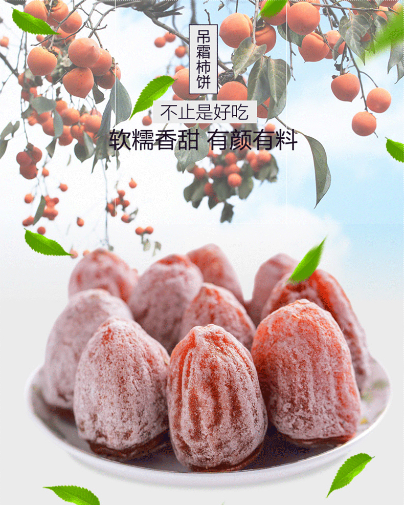 【回民街】陕西特产柿饼富平400g*2袋特级流心霜降吊柿饼,肉质致密,纤维少汁液多,农家传统手工12道工序霜降精制,味道甜美,营养丰富。坏果包赔