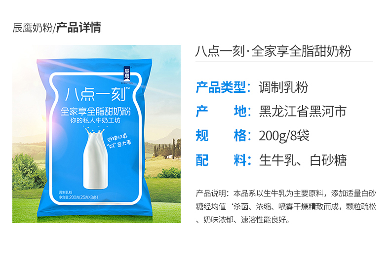 辰鹰奶粉 全脂甜奶粉8小袋装学生