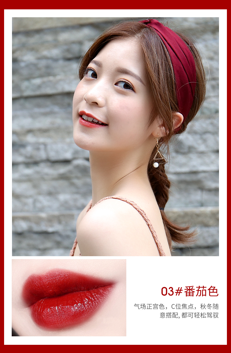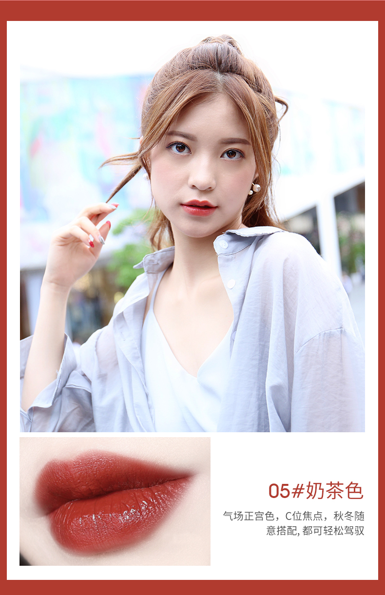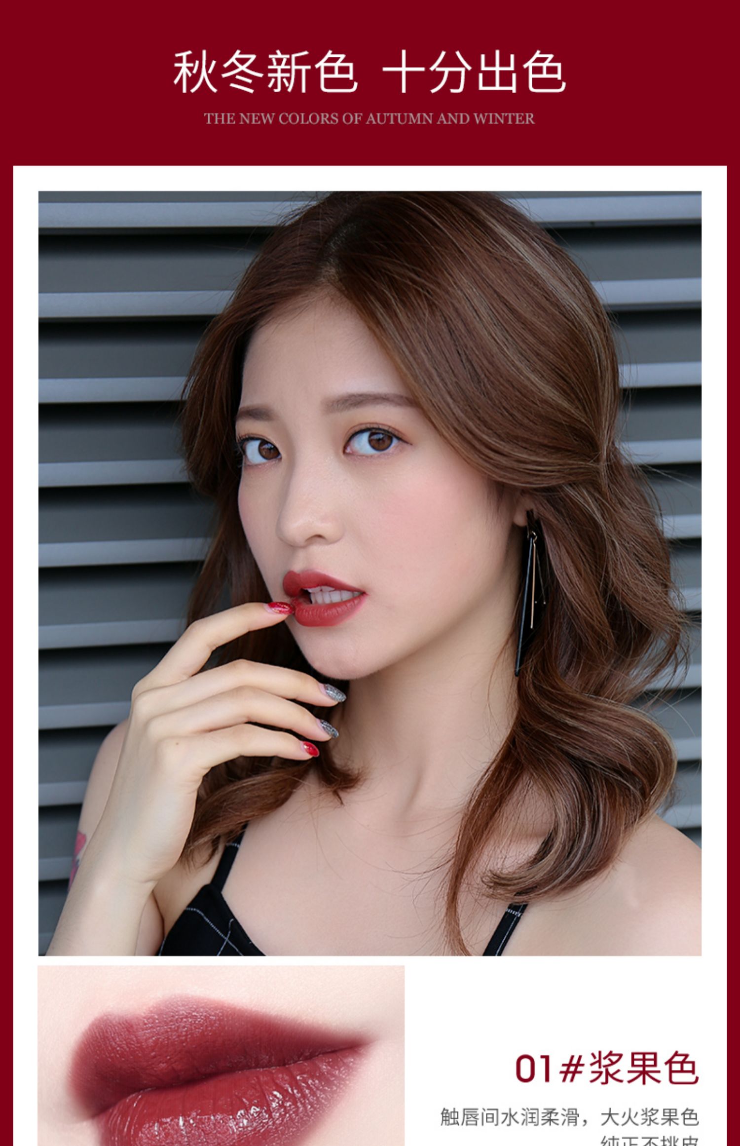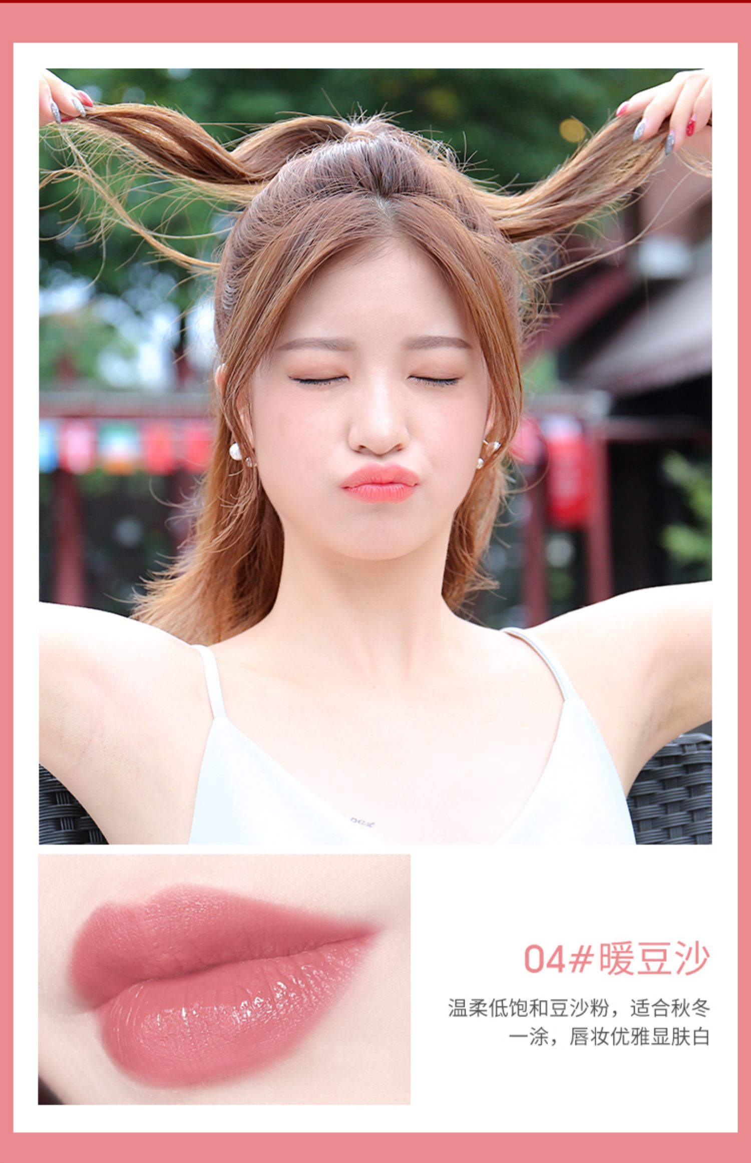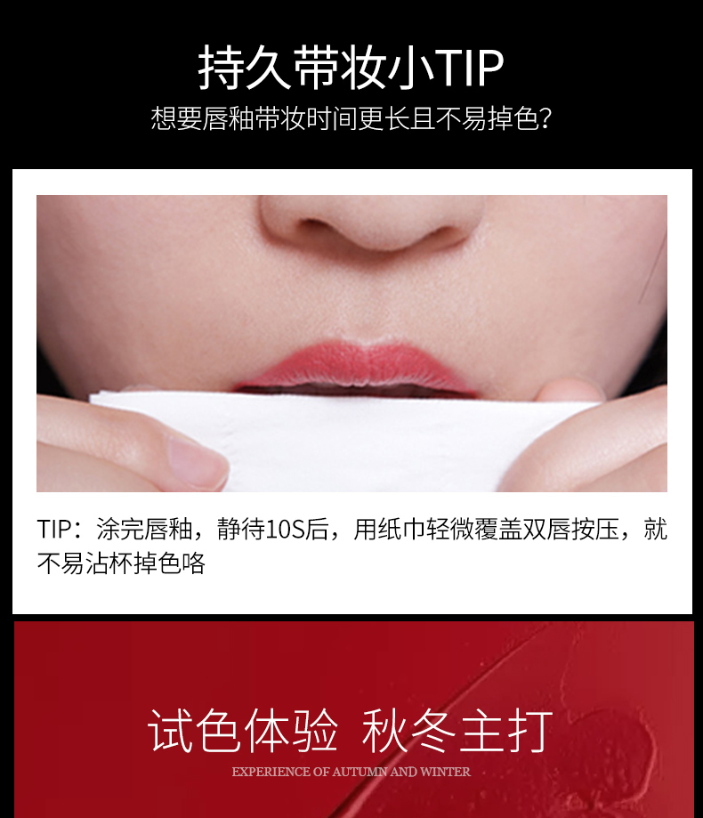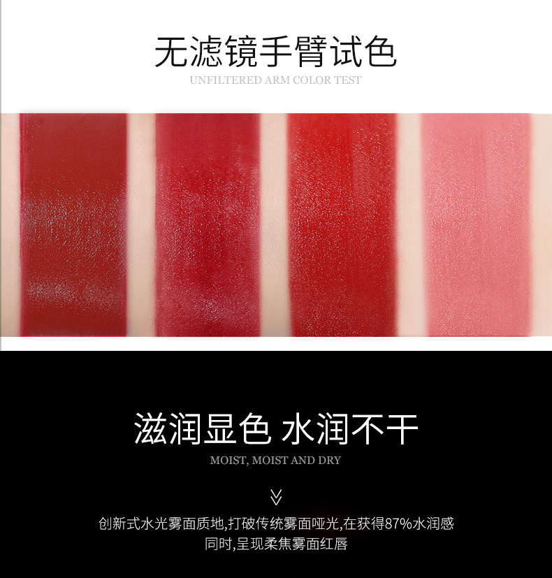 这个颜色也太好看了吧,素颜也可以顶得住,上唇还有些细闪哑光的质地,有雾面效果。秋冬季节各种妆容都能百搭 色彩饱和度很高,不沾杯不掉色,外观简约大方,性价比高,真的要吹爆这款唇釉!