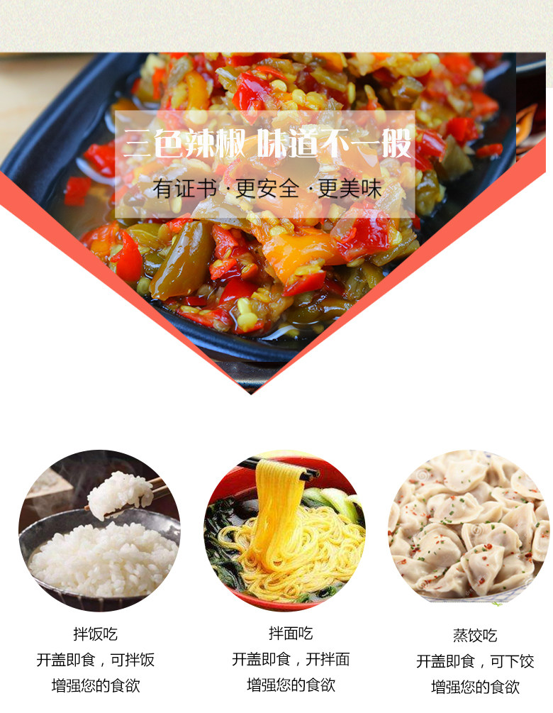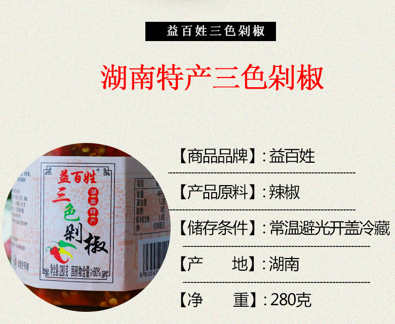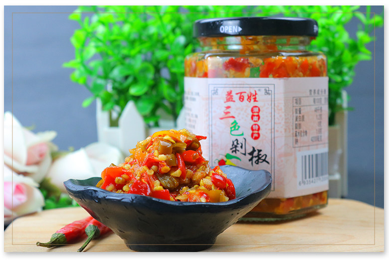 三色辣椒,放心吃,湖南特产益百姓三色剁辣椒!农家自制特辣蒜蓉辣椒酱手工下饭拌面,香辣下饭拌面超级好~
