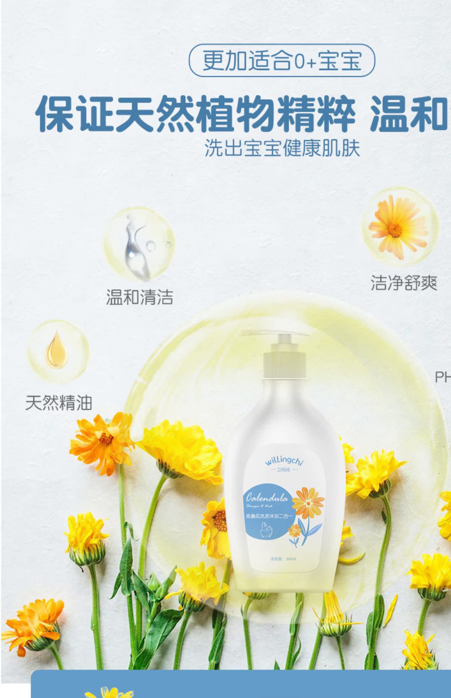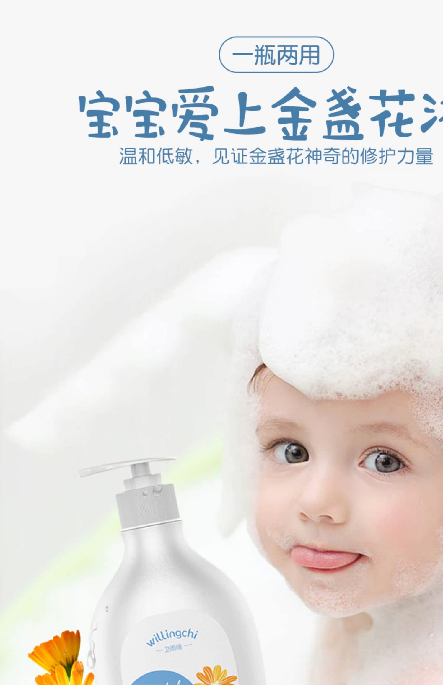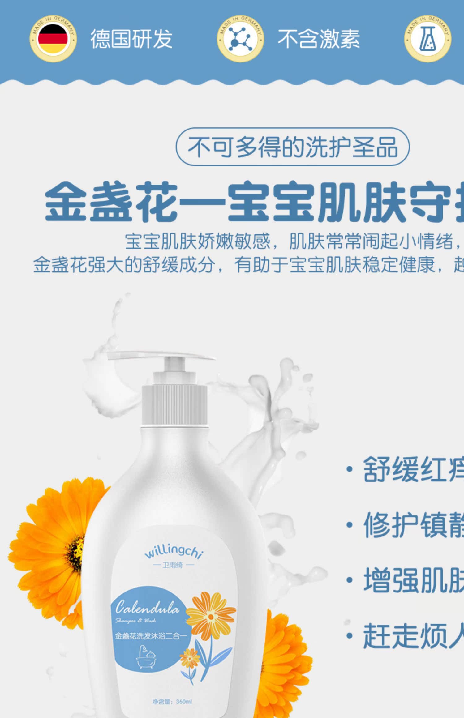 【第2件0元!拍2件超划算】德国研发!超市同步销售39元一瓶!我们只要19.9元!精选金盏花,更适合宝宝!超级温和,天然有机!边洗边玩睁着眼睛都不怕!沐浴洗发一瓶搞定!