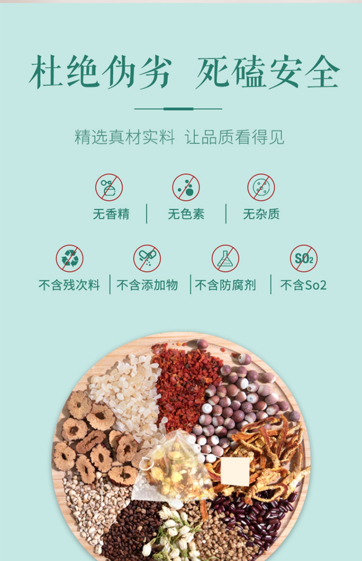 独立小包装,精选多种食材,精心配比,真材实料看得见,色泽金黄,无添加,口感清香回甘,每天一杯,喝出健康好气色,无湿一身轻~