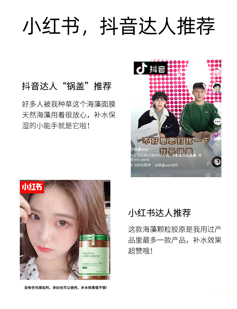 海藻面膜女小颗粒天然补水清洁孕妇美容院专用,甄选细小颗粒,出胶率,补水实力派!弹润又紧致,快给肌肤补补水吧~让你的肌肤从内到外,水水嫩嫩!