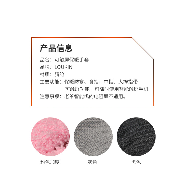 【买送屏幕清洁擦】精选优质面料,加绒内里,透气保暖,柔软舒适,灵敏的触屏效果,带给你更流畅的游戏体验,加绒加厚保暖,让你的手不再僵硬~手机党极力推荐~