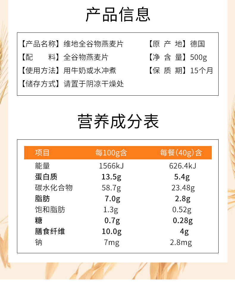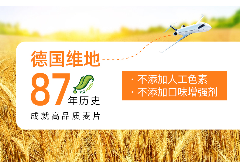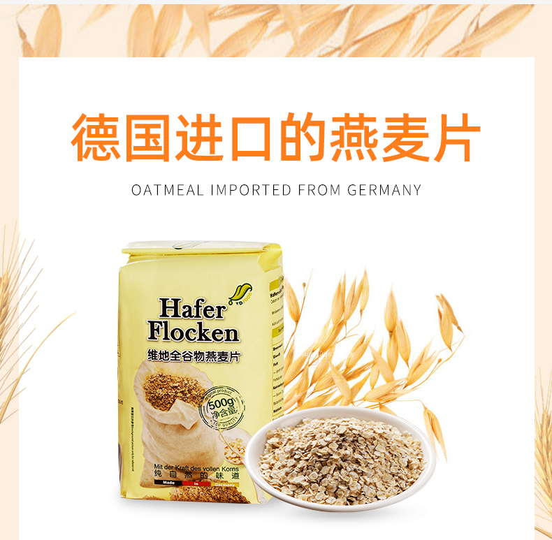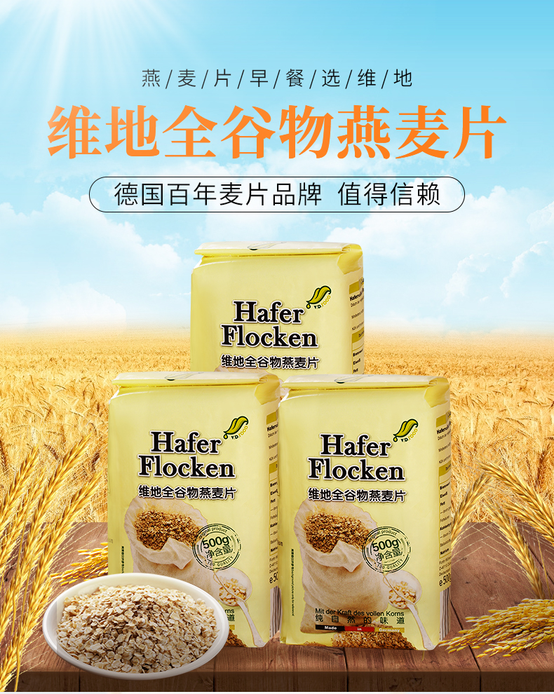 德国百年品牌V.D.FOOD纯燕麦片,无脱脂无添加任何蔗糖~原装进口,挑选优质小麦,富含膳食纤维,适合各种人群,全家人更全面的营养补充!高纤高钙,即冲即食健康每一天!【赠运费险】