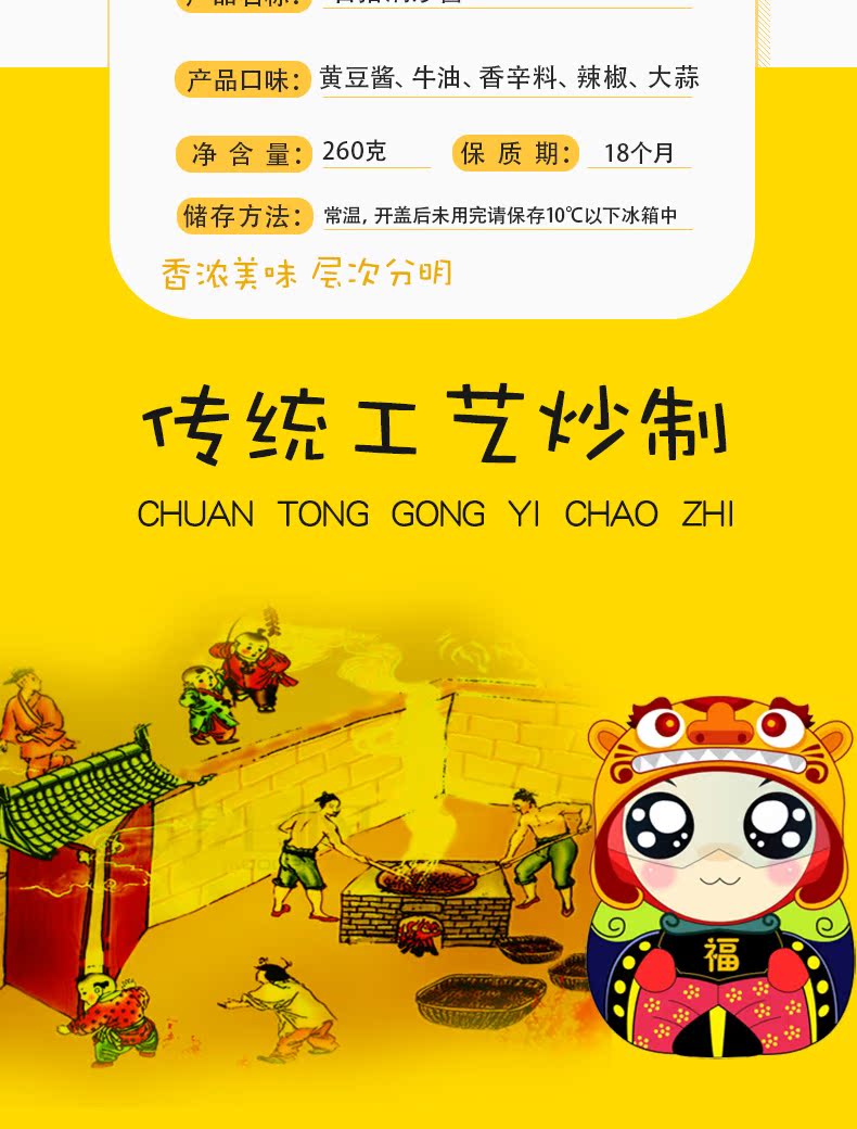 【破损包退!赠运费险】惊爆价,舌尖上的美食搭档,给生活加点佐料,好油好黄豆好辣椒,真材实料看得见,加上其他食材细心调和,精心熬制,拌饭、吃面必备,美食先生百搭焖炒黄豆酱260g大瓶实惠速购~~