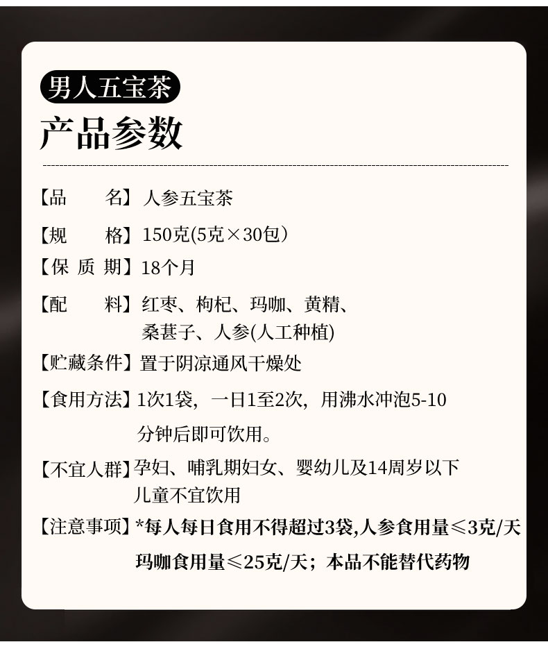 【买二发三】男人五宝茶,优质原料,科学配比,天然植物无添加,香味浓厚,口感好,易冲泡,每日一杯,滋补养身,补充精气神!独立包装,携带方便~