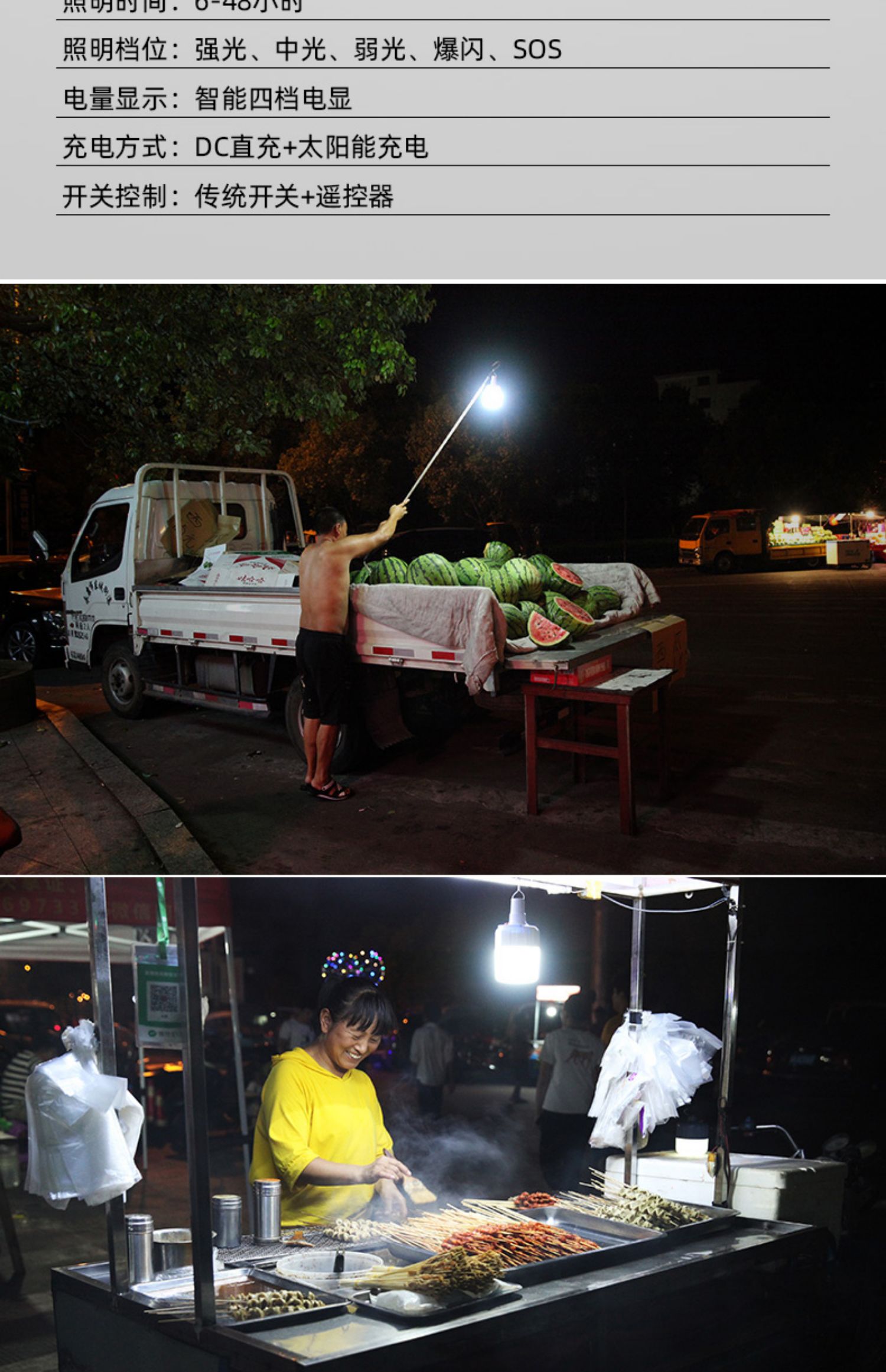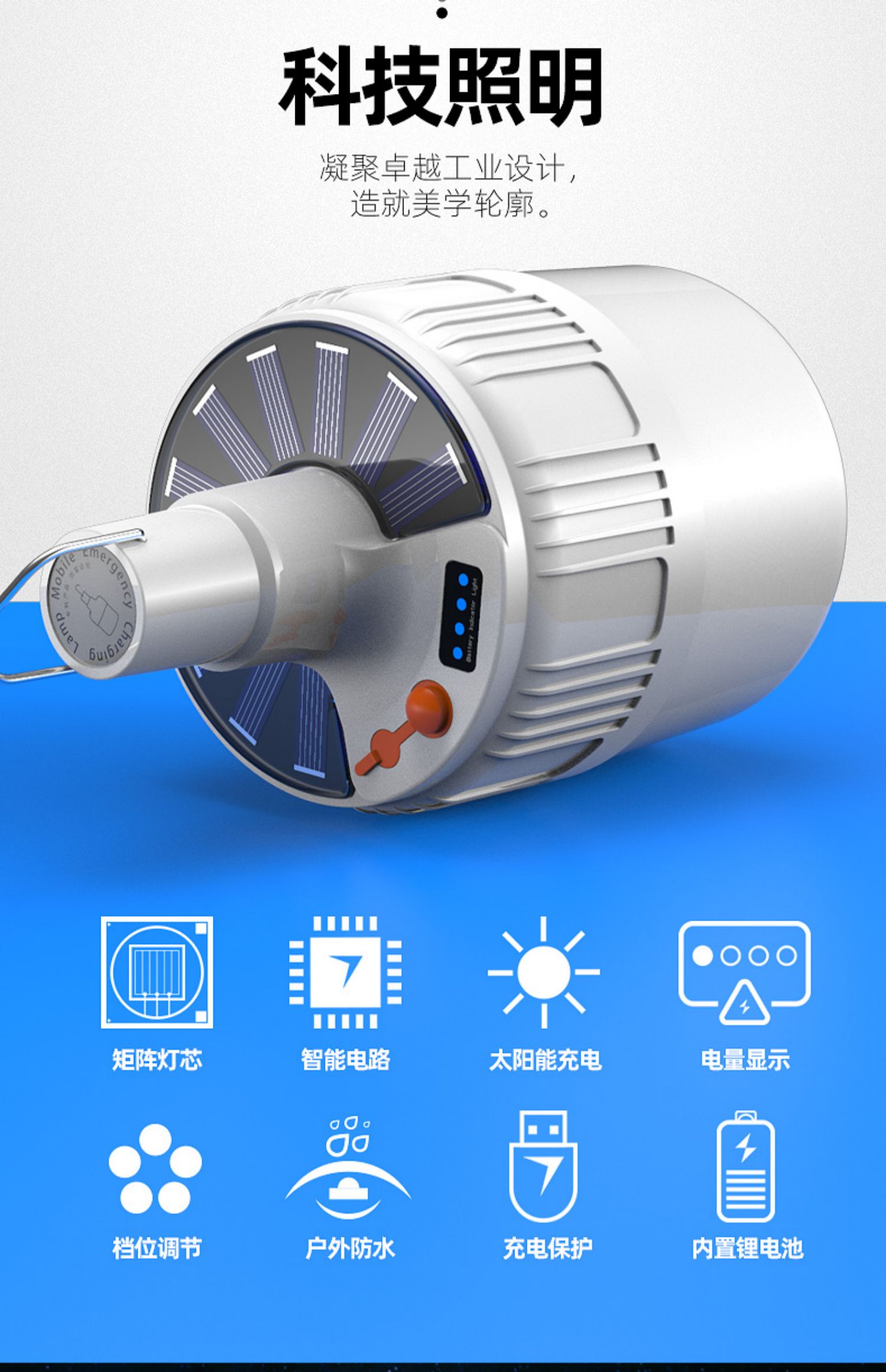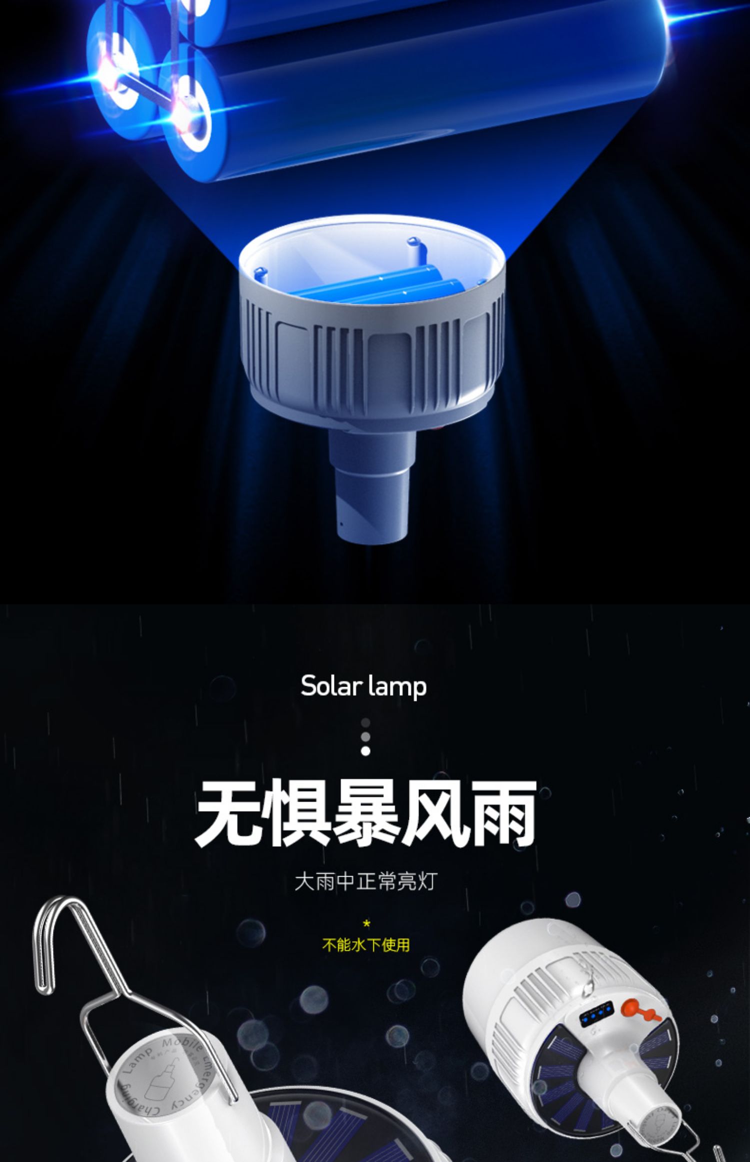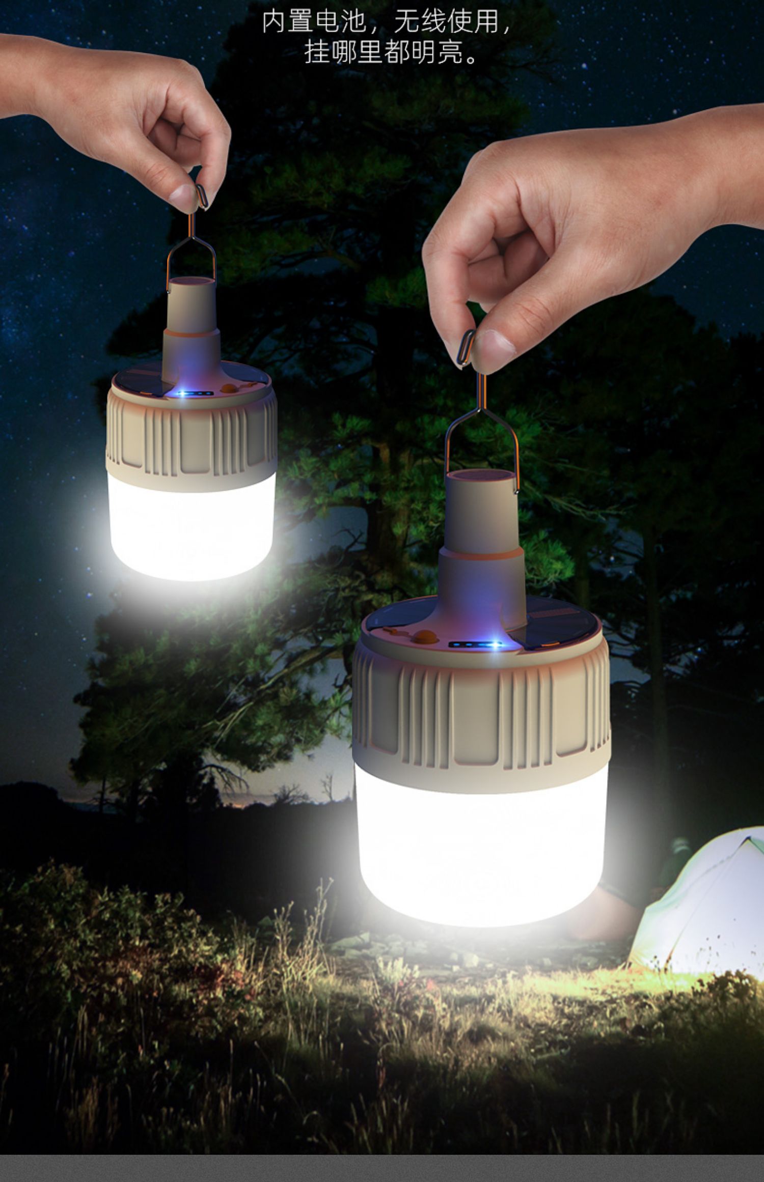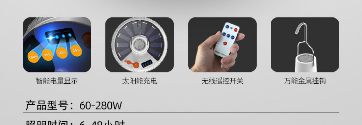 【送原装线】USB充电,ABS外壳不怕摔,LED灯芯,内置电池,无需拉线布线,充满电打开开关即可使用,亮度高达300w,透光性强,光照面广,五档调光,特有挂钩设计,48小时持续续航!解决没电的一切烦恼