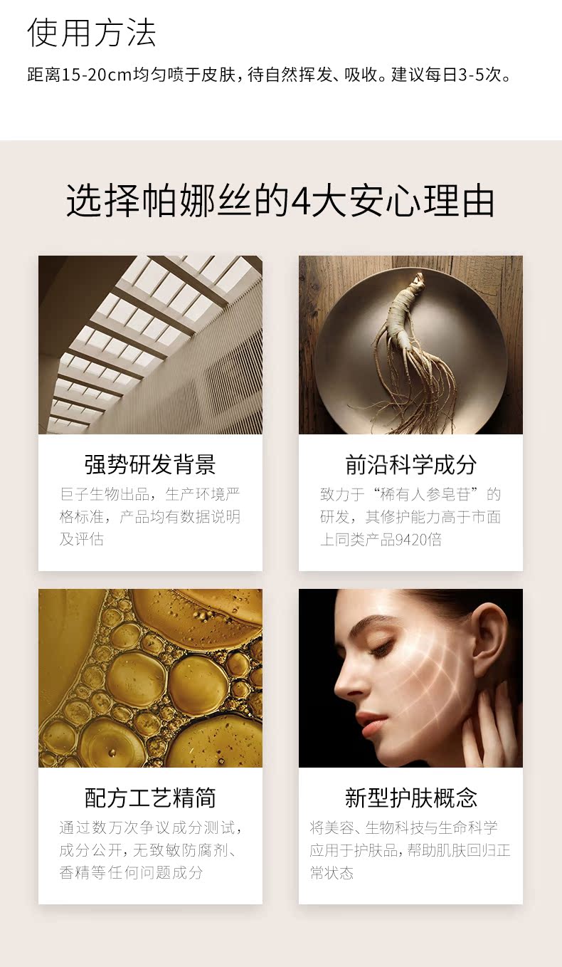 帕娜斯人参保湿喷雾50ml,水润修护能量瓶,修护肌肤,改善脆弱肤质,强韧基底!